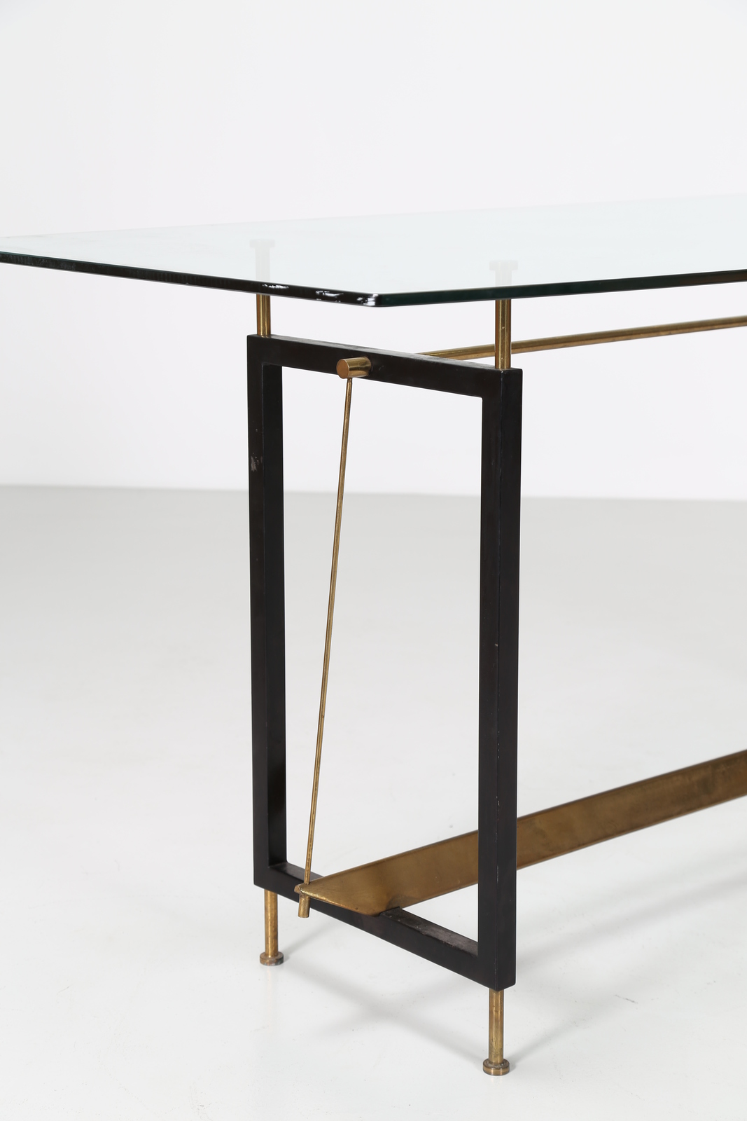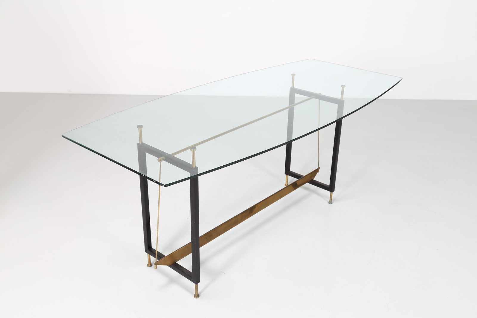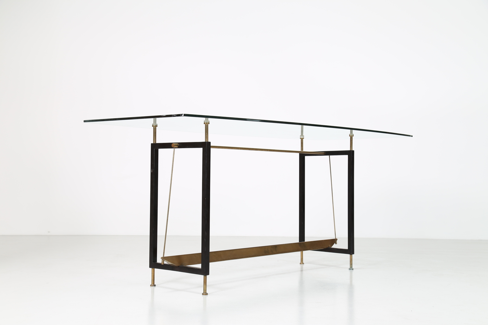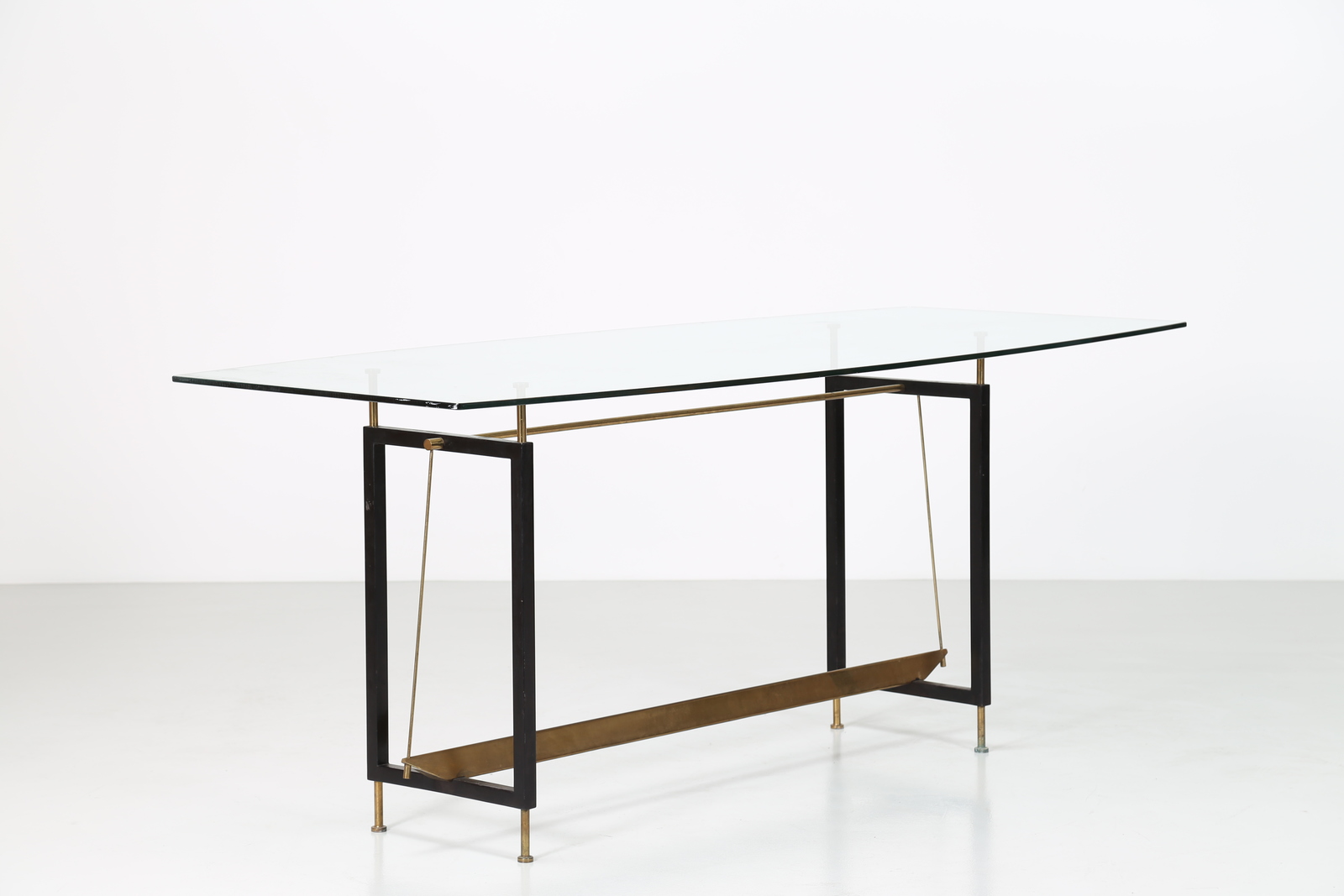 RICCI LEONARDO (1918 - 1994) Attrib. Tavolo in metallo laccato e ottone con piano in cristallo, anni 50. -. Cm 200,00 x 82,00 x 90,00.