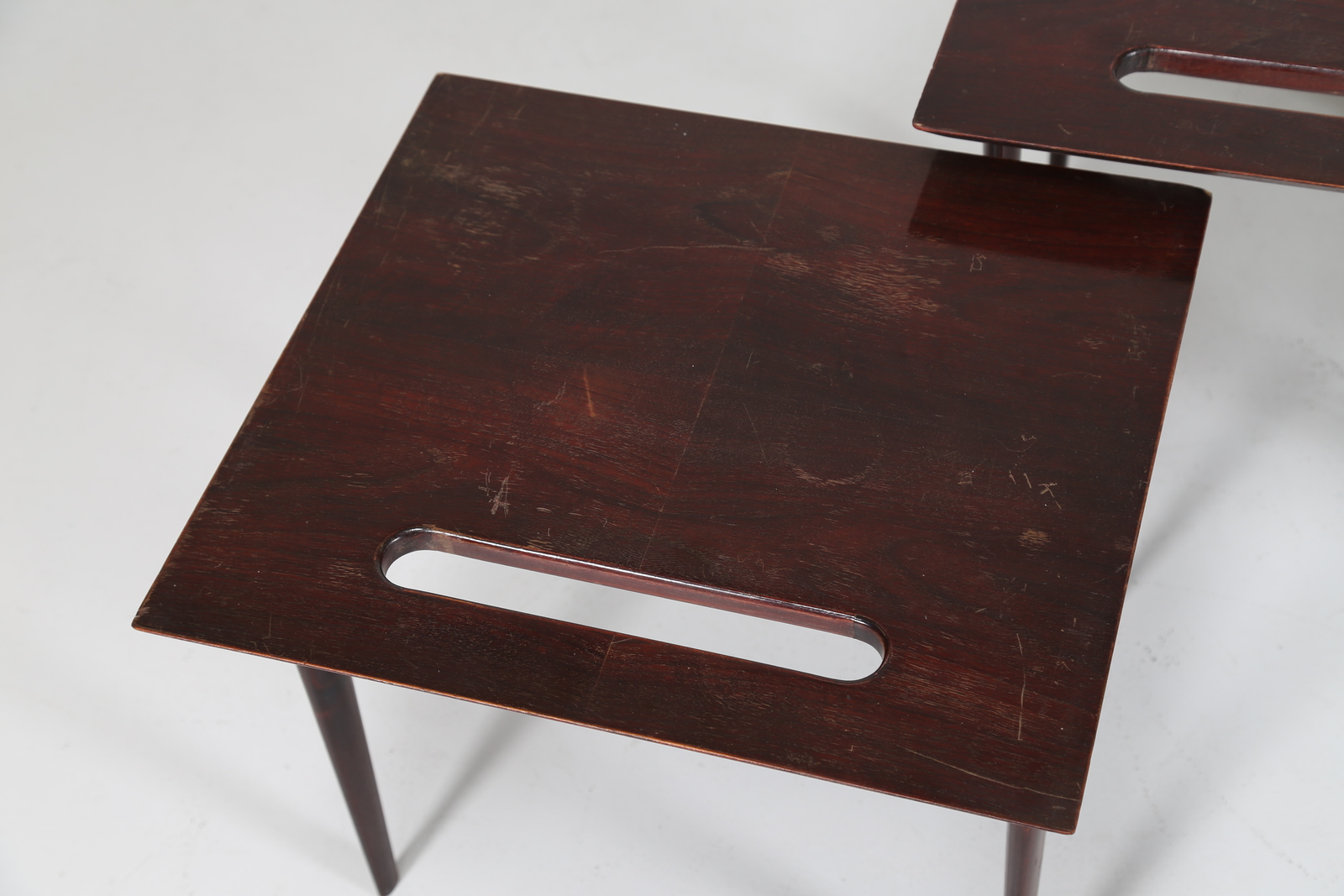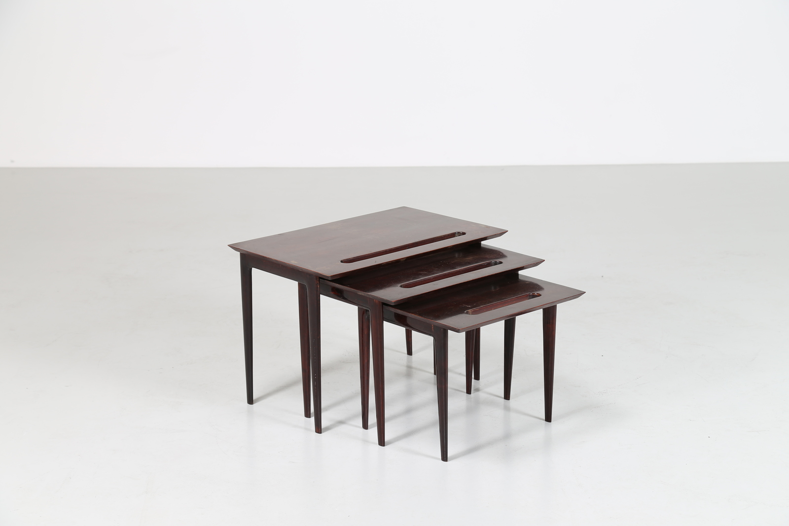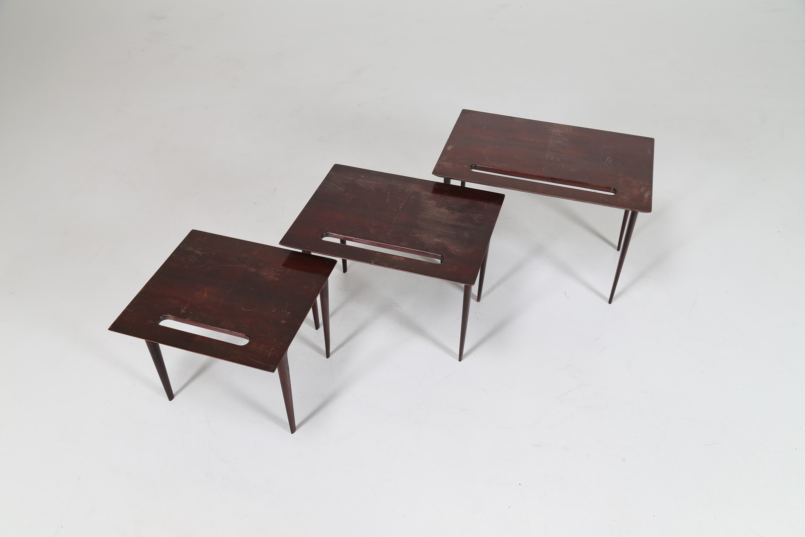 PARISI ICO (1916 - 1996) Set of three rosewood stuckable small table, Fratelli Rizzi Intimiano’s production for Singer & Sons 1951. Literature; Ico Parisi Design, Ragionato catalog, Silvana editorial examined by Roberta Lietti, pag. 139, 1951.S3. The certificate of authenticity is available, Ico Parisi’s archive of design.