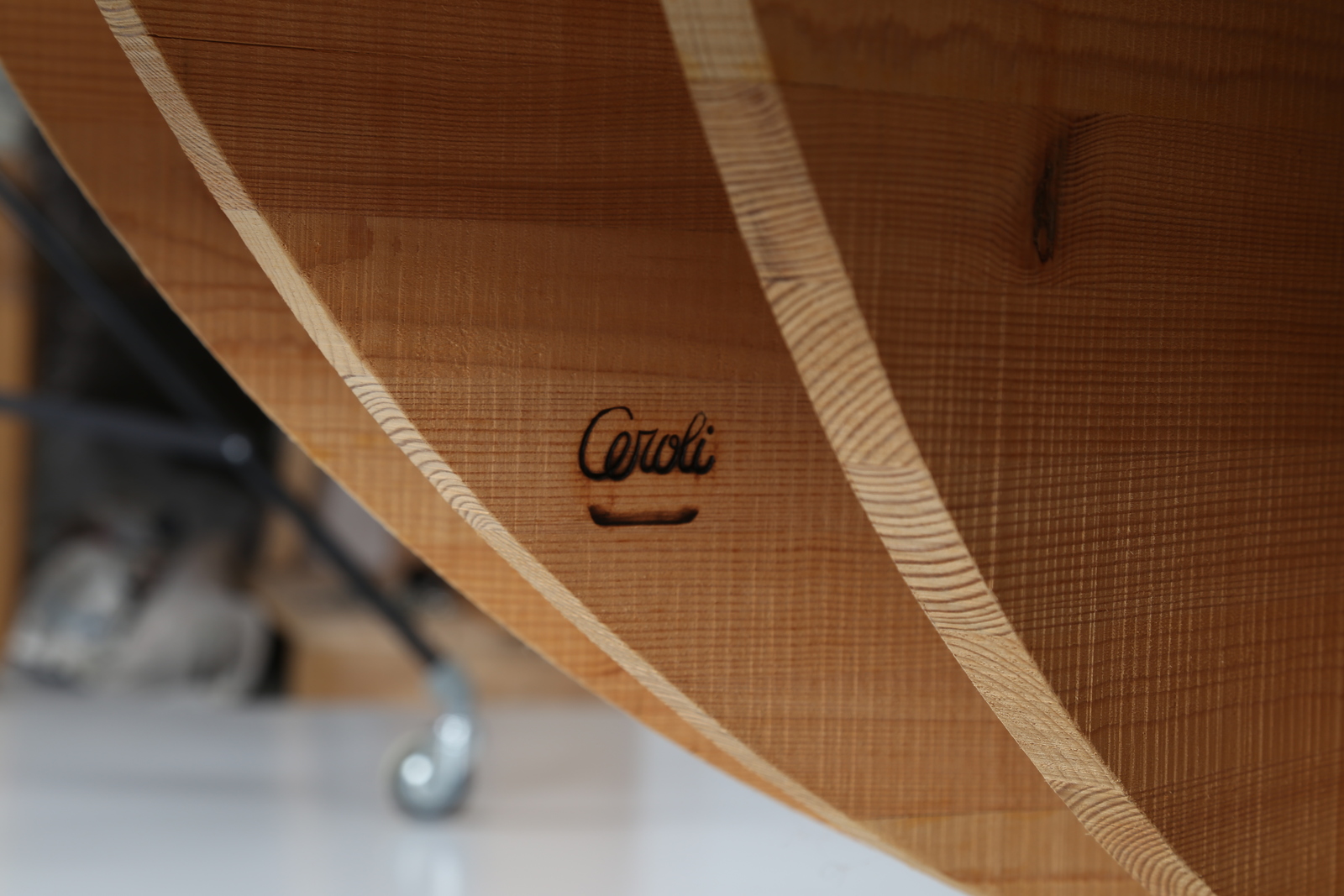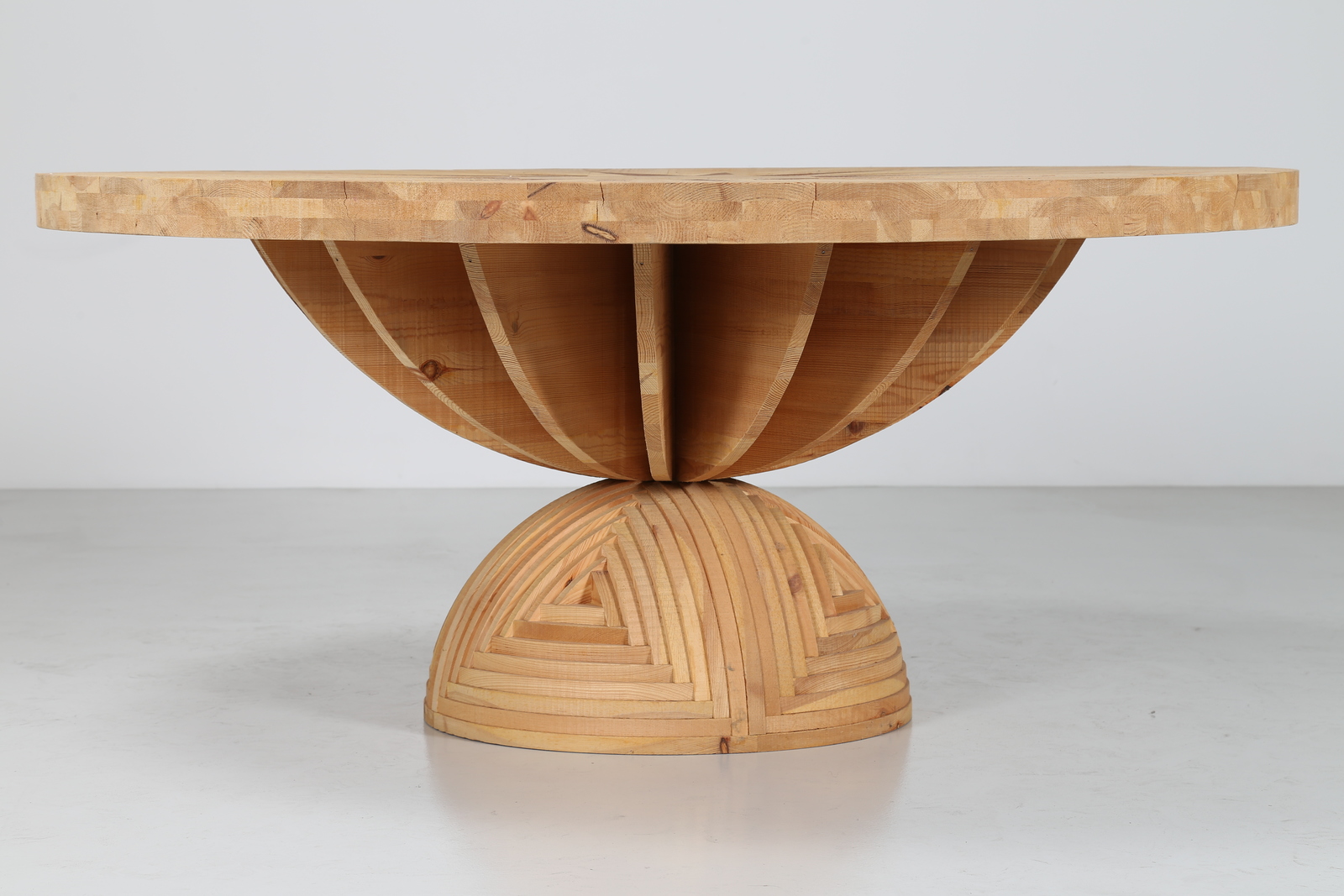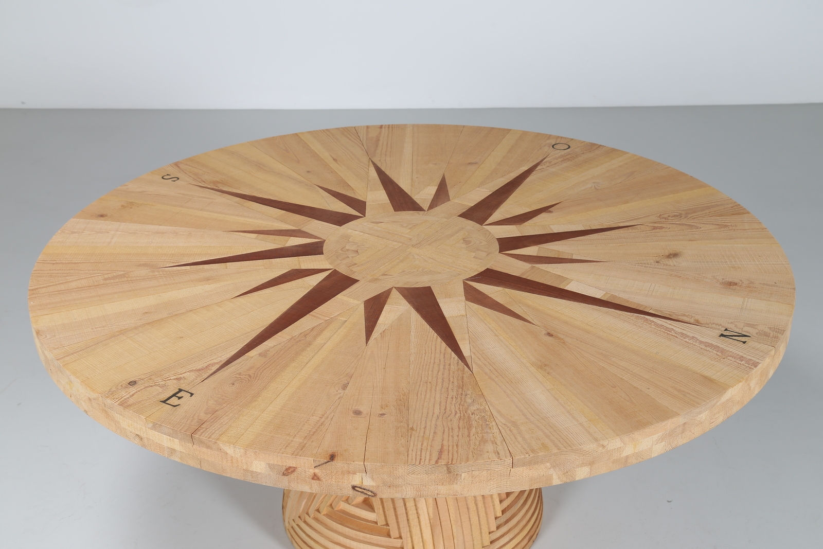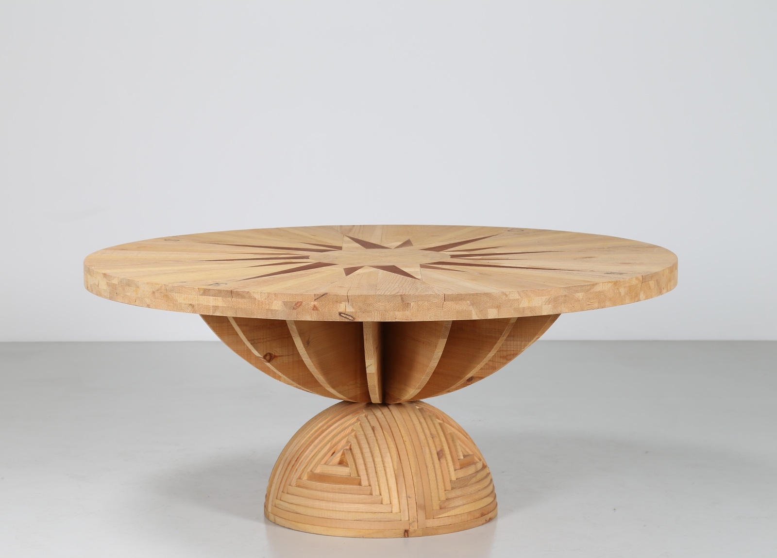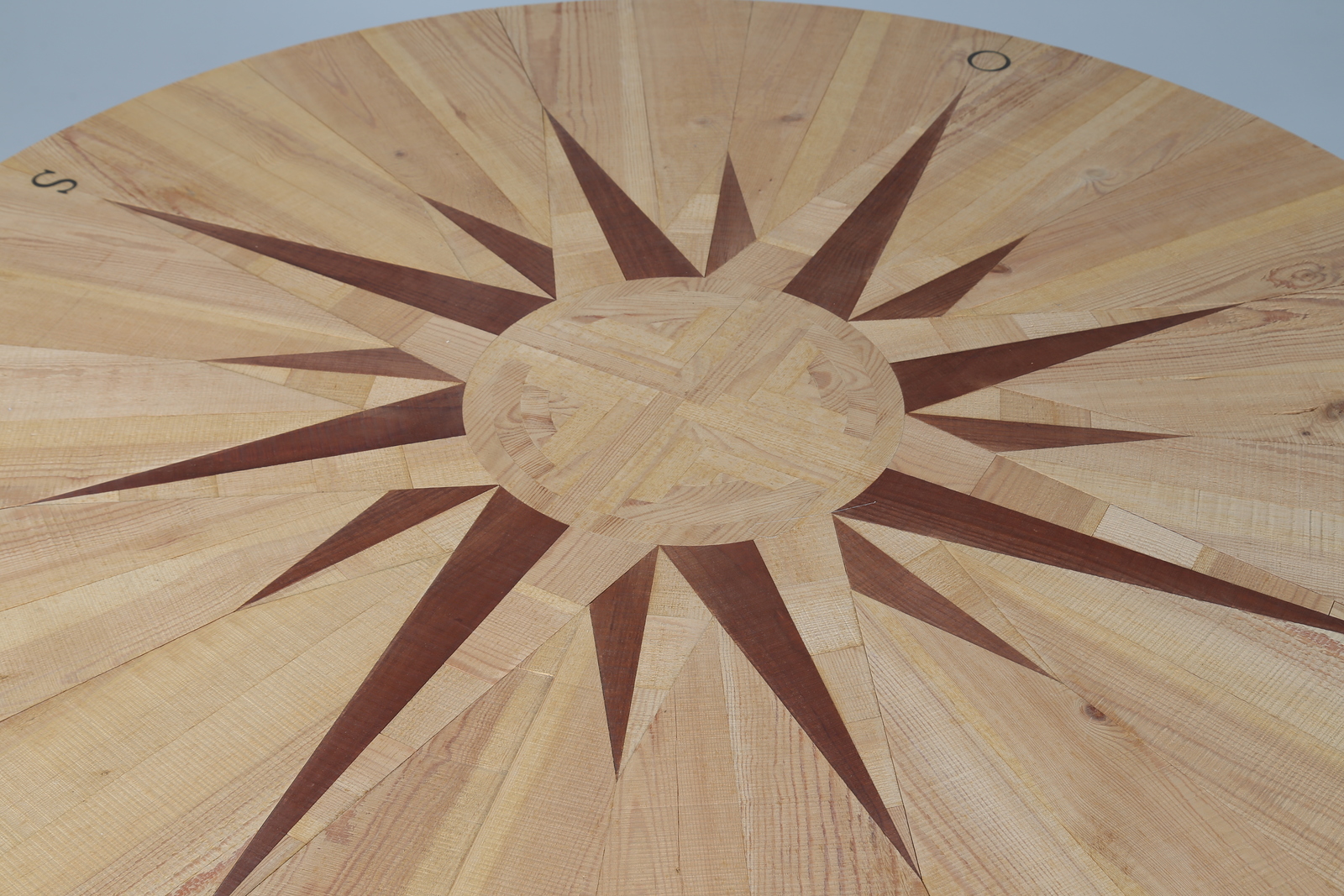 CEROLI MARIO (n. 1938) Wood table, la Rosa dei venti (=wind rose) for Poltronova, 70’s. Inlaid wood.