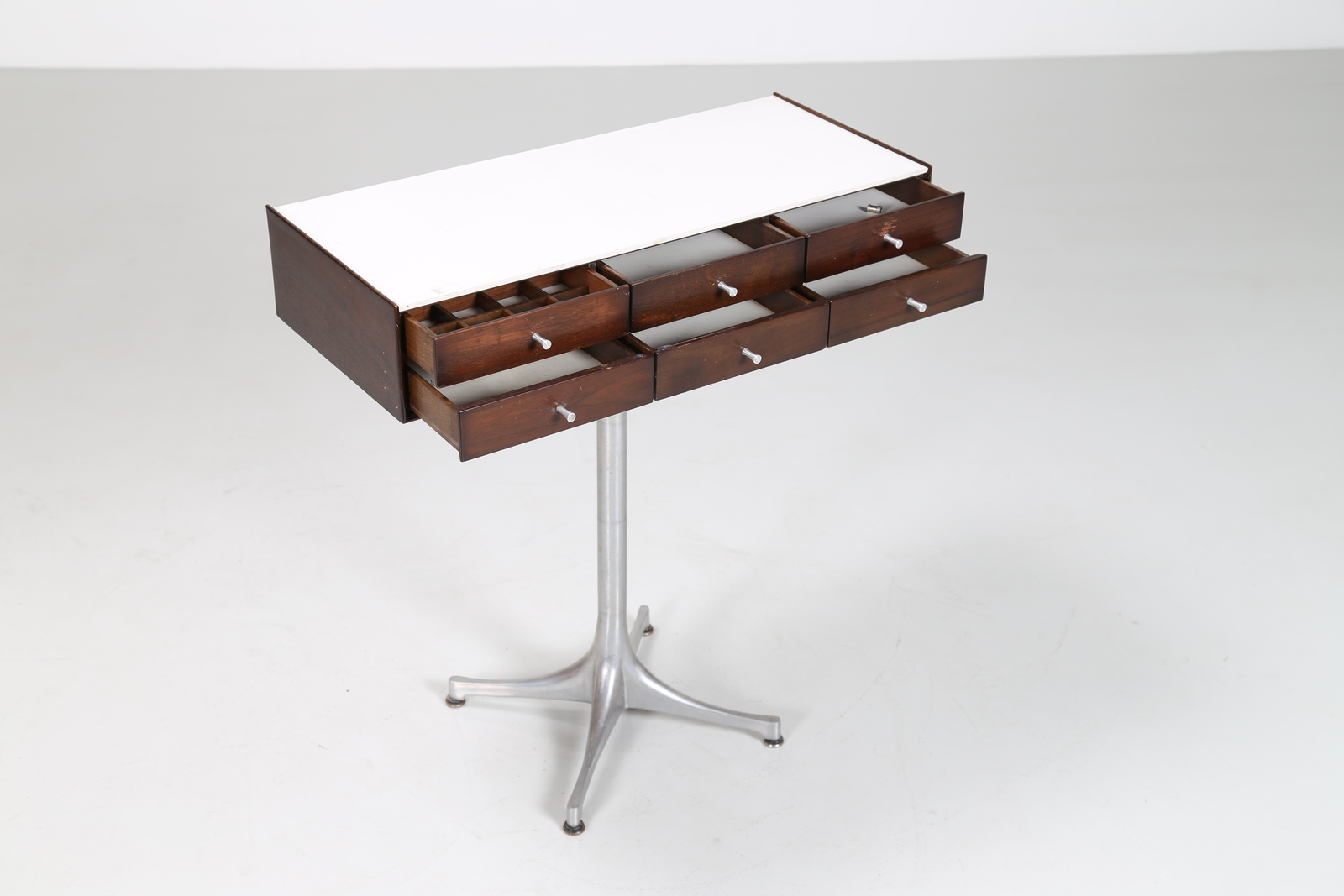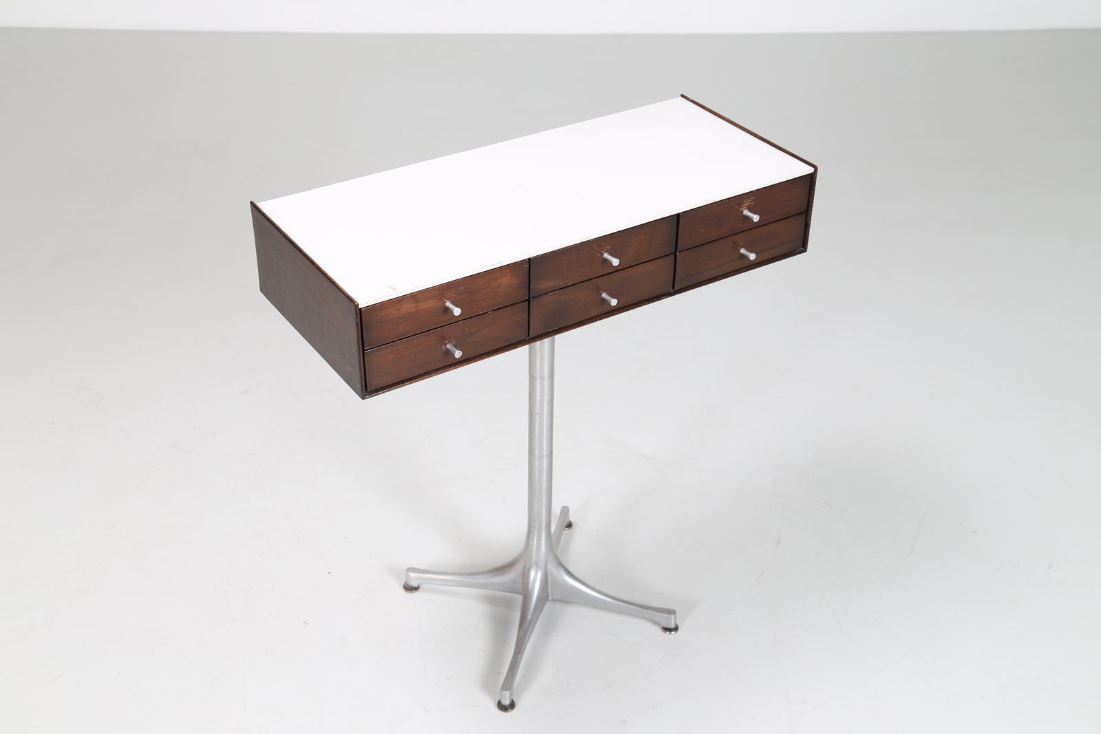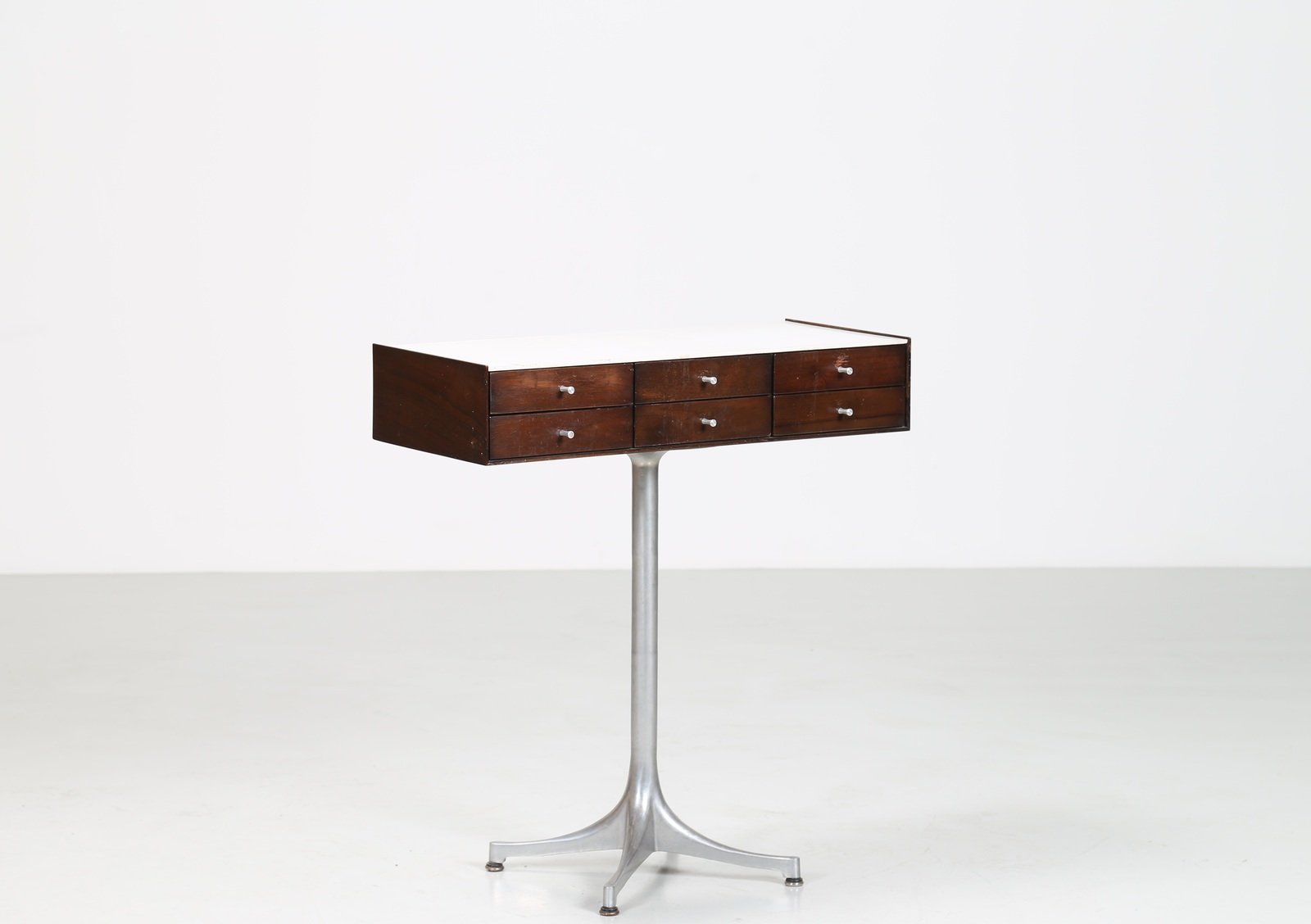 NELSON GEORGE (1908 - 1986) Walnut and lacquered metal furniture with six drawers, mod. 5215, for Erman Miller, 50’s. Literature; Herman Miller Collection, producer’s catalog.