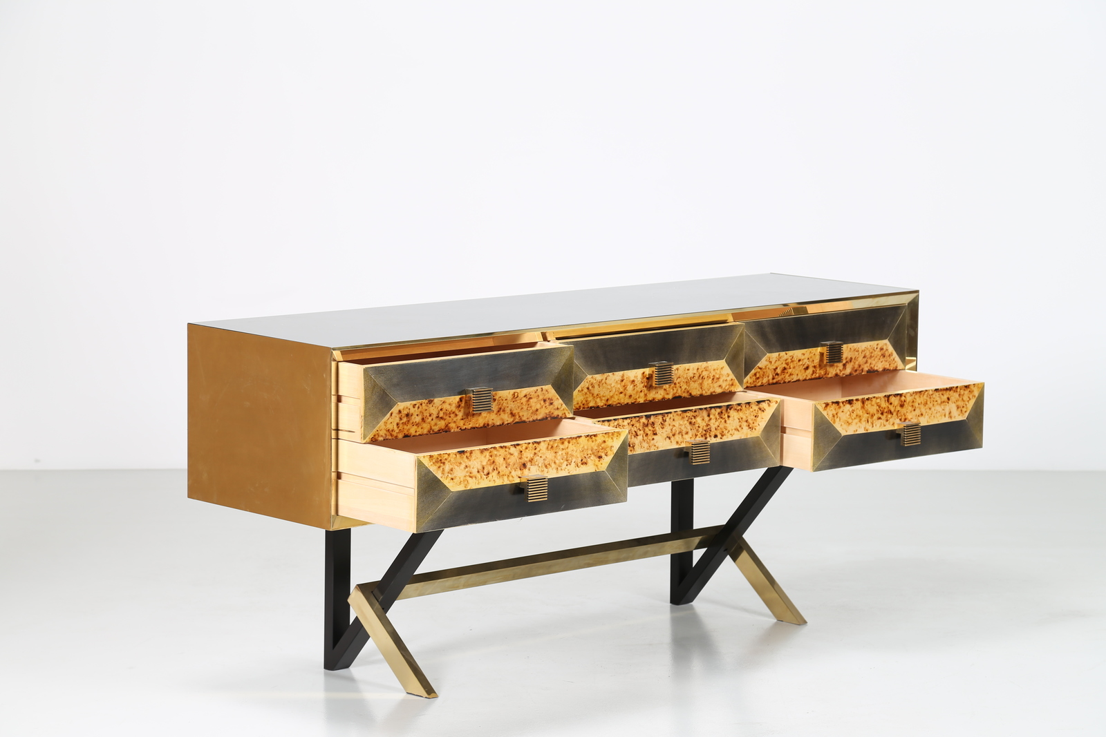 PILLANT MORDECAI Comò in legno e ottone, gambe in ferro laccato e ottone, cassetti con decoro realizzato a combustione, 2015