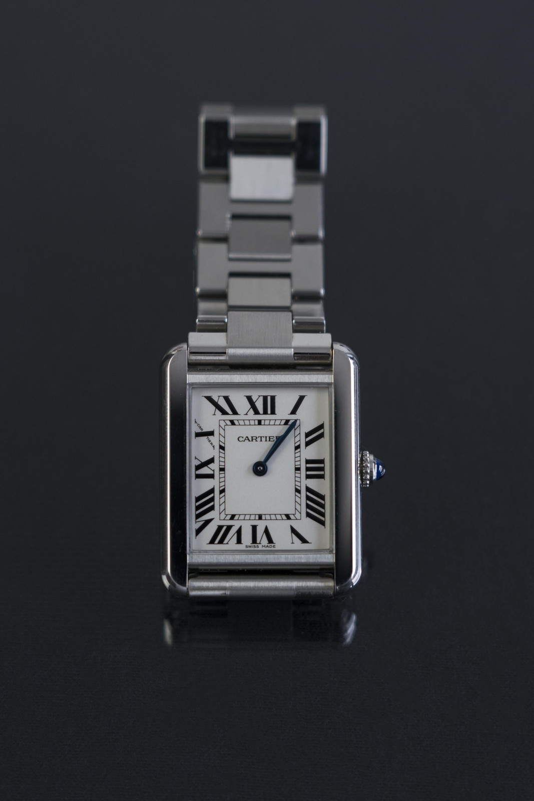 CARTIER Orologio Cartier Tank in acciaio completo di bracciale. -. .