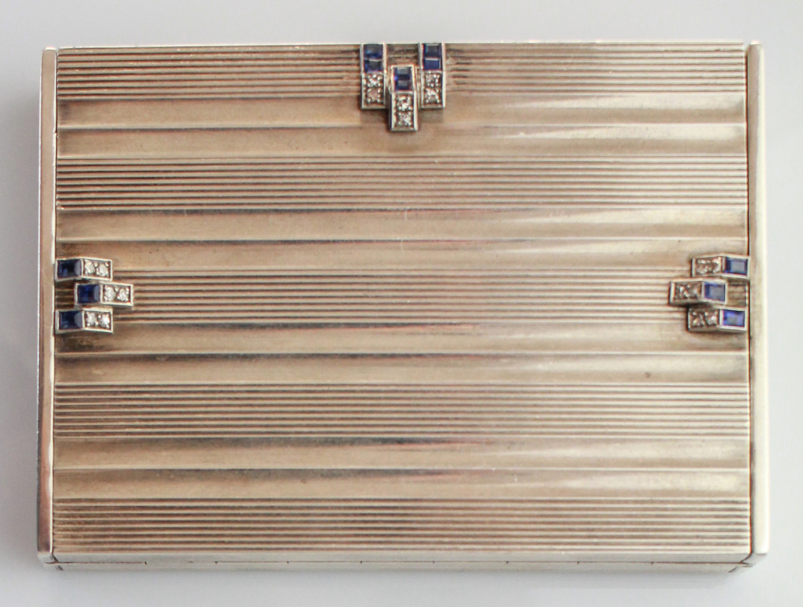 [Nessun Autore] Scatola/minutiere in oro bianco zaffiri e brillanti firmato Illario gr 201.90. . -. .