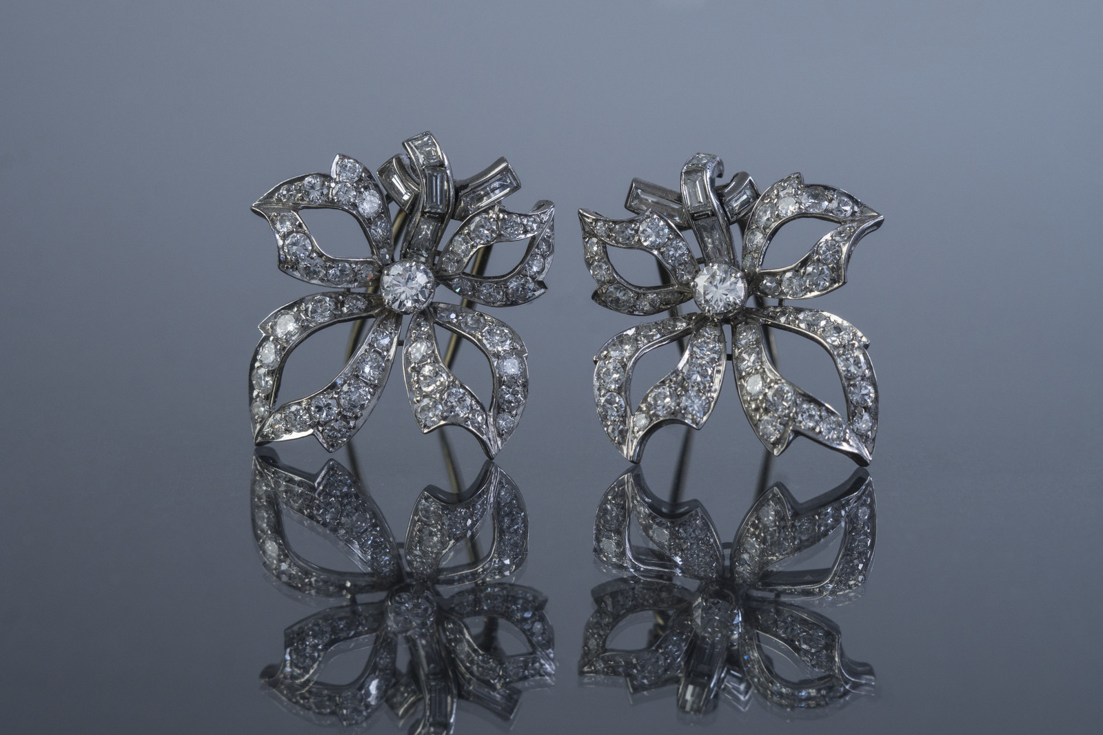 [Nessun Autore] Coppia di clip a fiore in platino gr 13. -. .