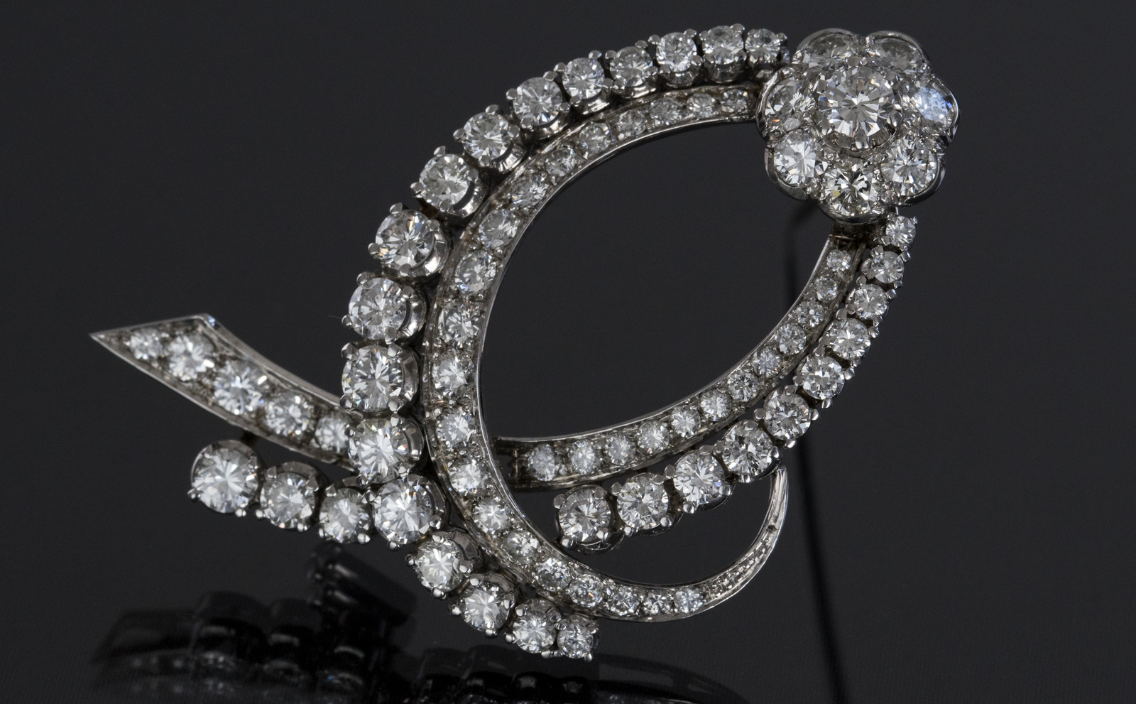Lot 148 | [Nessun Autore] Spilla in oro bianco gr 11,20 con cts 5.30 di brillanti. -. .