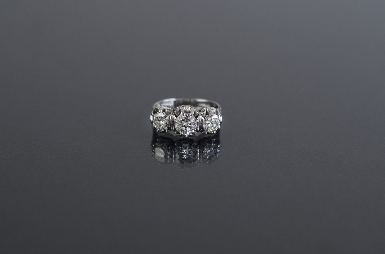 [Nessun Autore] Anello in platino con tre diamanti taglio vecchio. -. .