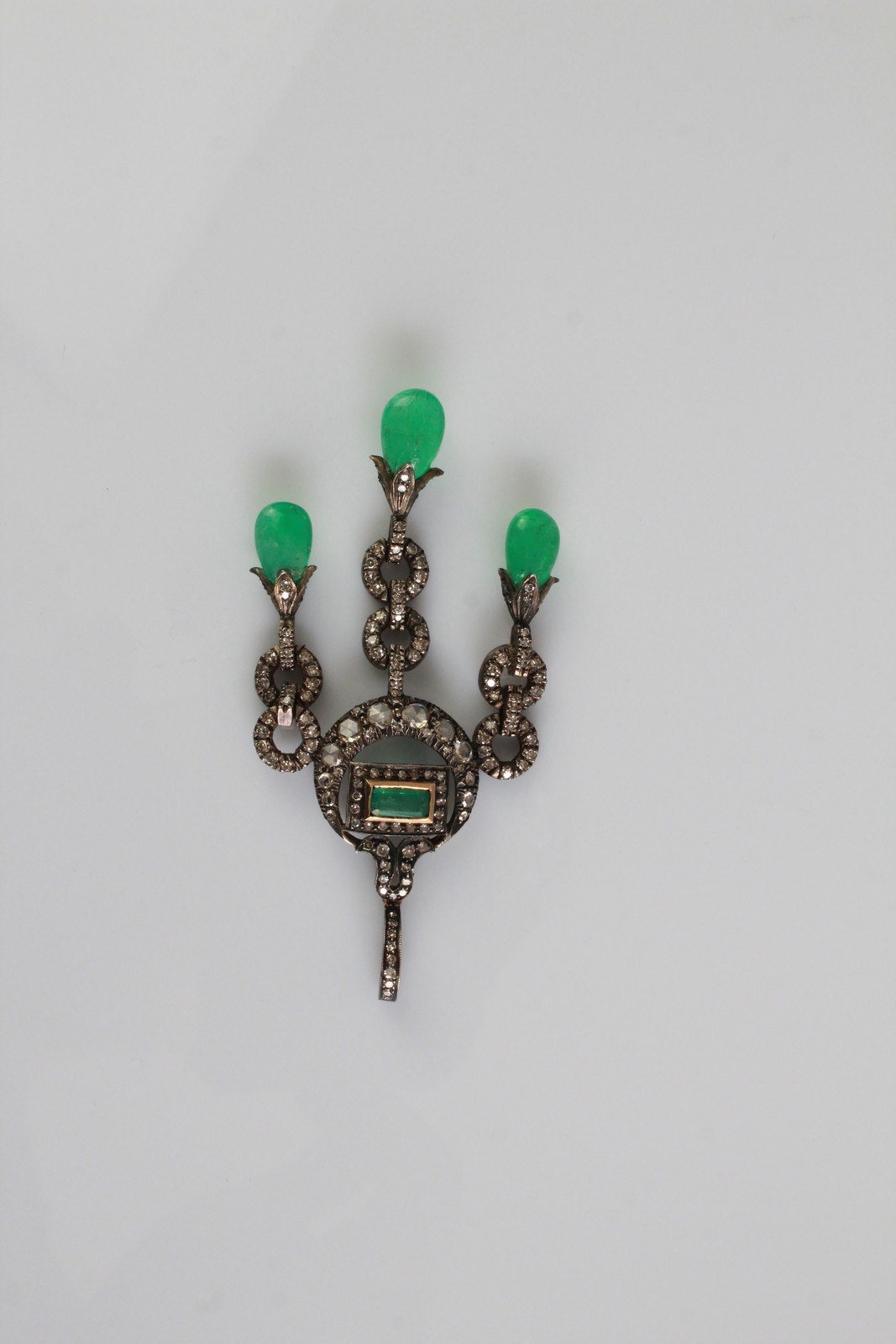 Pendente gr 12.70 oro di bassa caratura cts 7.5 circa di smeraldi e diamanti di vario taglio. . -. .