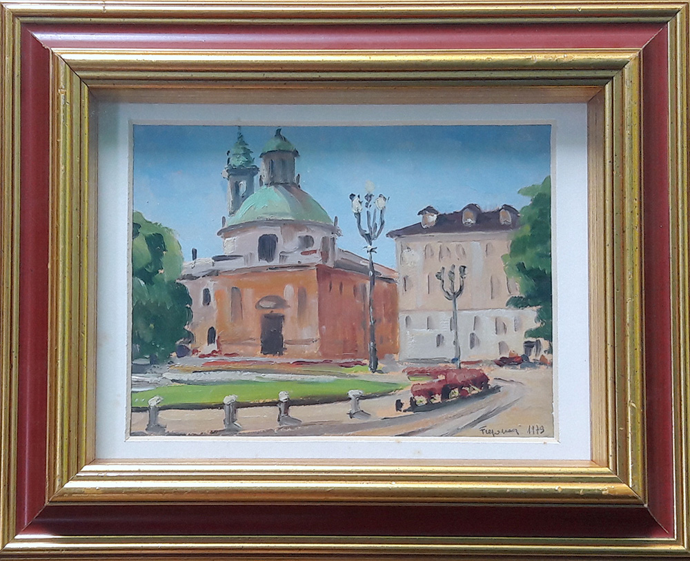 Lotto di 2 opere: - Luciano Fregonara, "Piazza Carlina, Torino" - 1979 - Olio...