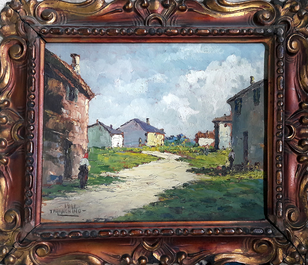 Lotto di 2 opere di Telesforo Franchino: "Paesaggi" - 1941 - Olio su cartone rigido - cm 24x30 - Firma dell'artista in basso a sx