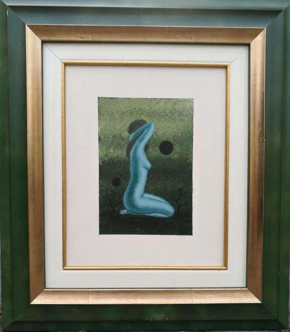 Gianfranco Rontani "Nudino azzurro" - Olio su tela - 30x25 - Firma e n. di archivio al retro