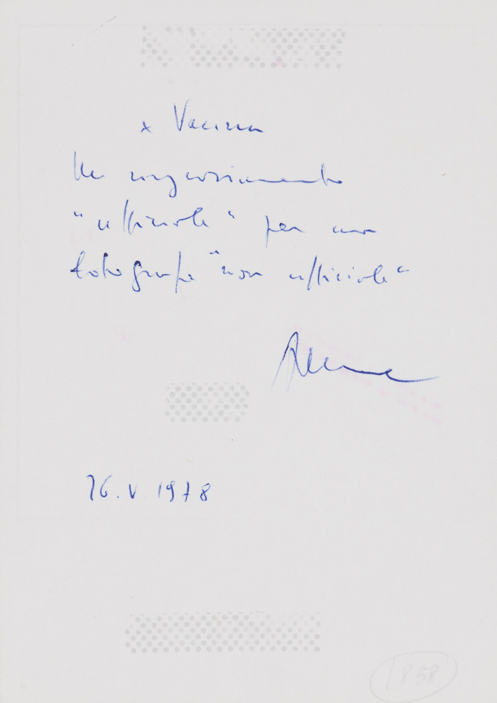 Firma e datazione al fronte