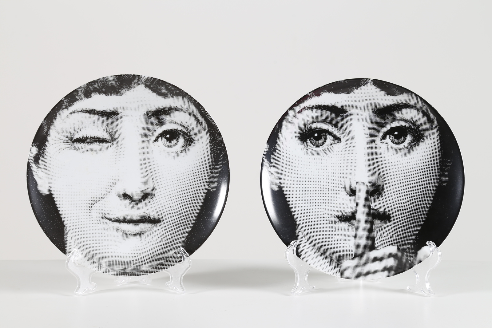FORNASETTI PIERO (1913 - 1988) Pair of ceramic dishes, series Tema and Variazioni, Fornasetti Milano, 60’s. Brand on the back.