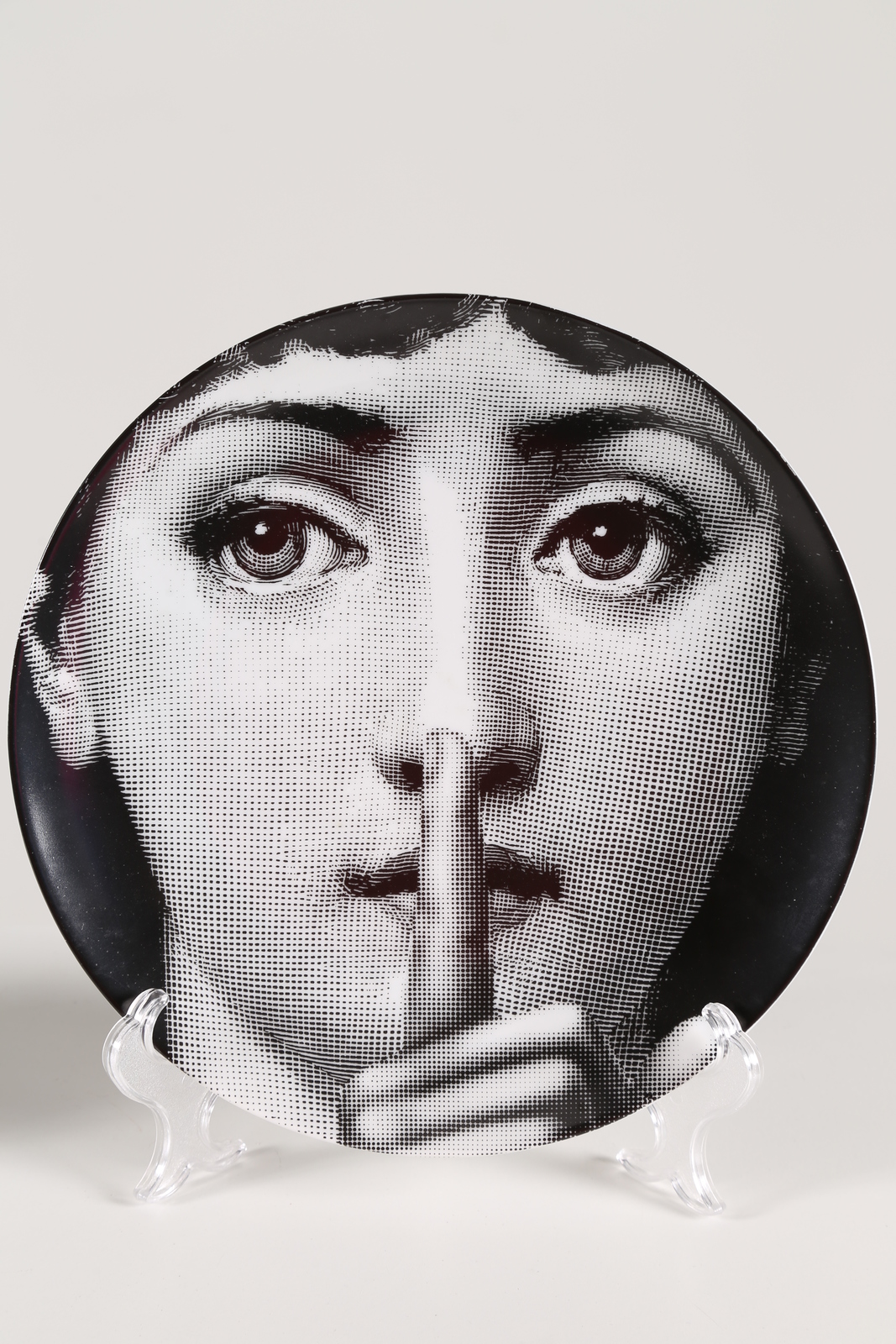 FORNASETTI PIERO (1913 - 1988) Coppia di piatti in ceramica serie Tema e Variazioni, Fornasetti Milano anni 60. Marchio sul retro. -. Cm 26,00 x 2,50 x 26,00.