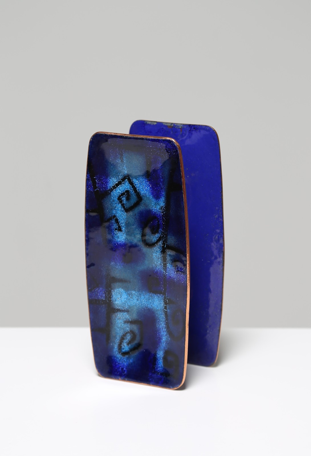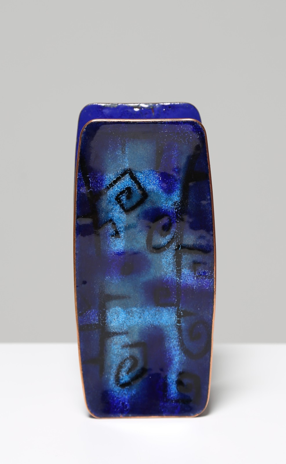 DE POLI PAOLO (1905 - 1996) Blue enamelled copper complete and rectangular handle, for Smalti De Poli Padova, 50’s.