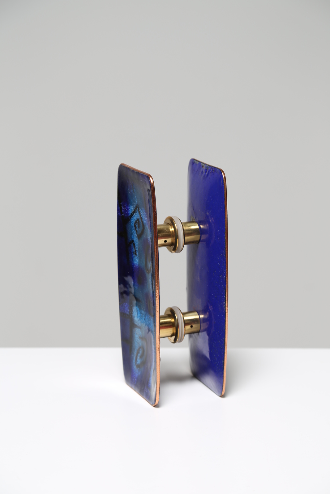 DE POLI PAOLO (1905 - 1996) Maniglia completa rettangolare in rame smaltato blu, per Smalti De Poli Padova anni 50