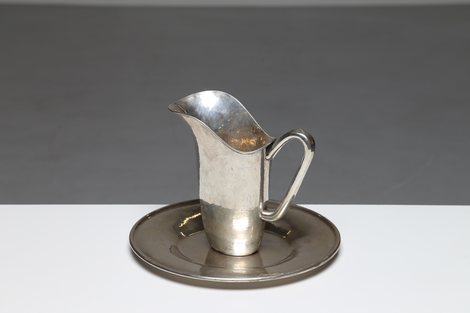 GENAZZI LUIGI Silver pitcher and tray, for Genazzi, 50’s, Milan. There is the producer’s brand and stamps on the base.