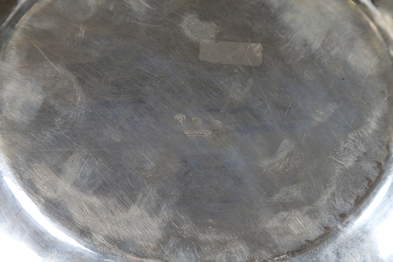 GENAZZI LUIGI Brocca e vassoio in argento, per Genazzi anni 50 Milano. Marchio del produttore e punzoni presenti alla base.