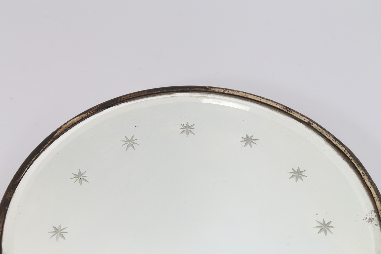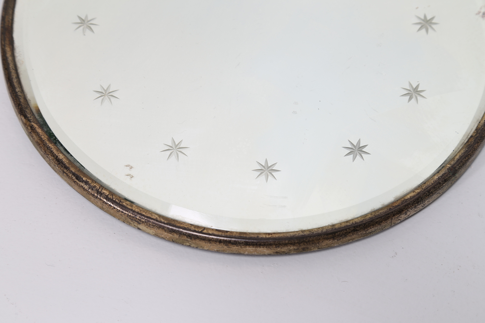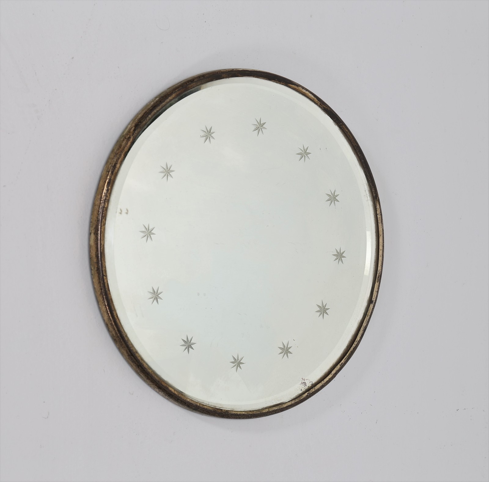 FONTANA LUIGI Attrib. Specchio rotondo in ottone e vetro inciso a stelline, anni 40. -. Cm 31,00 x 1,50 x 31,00.