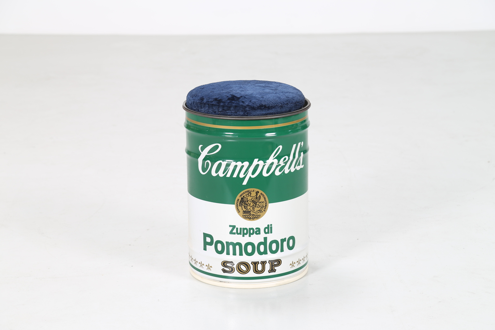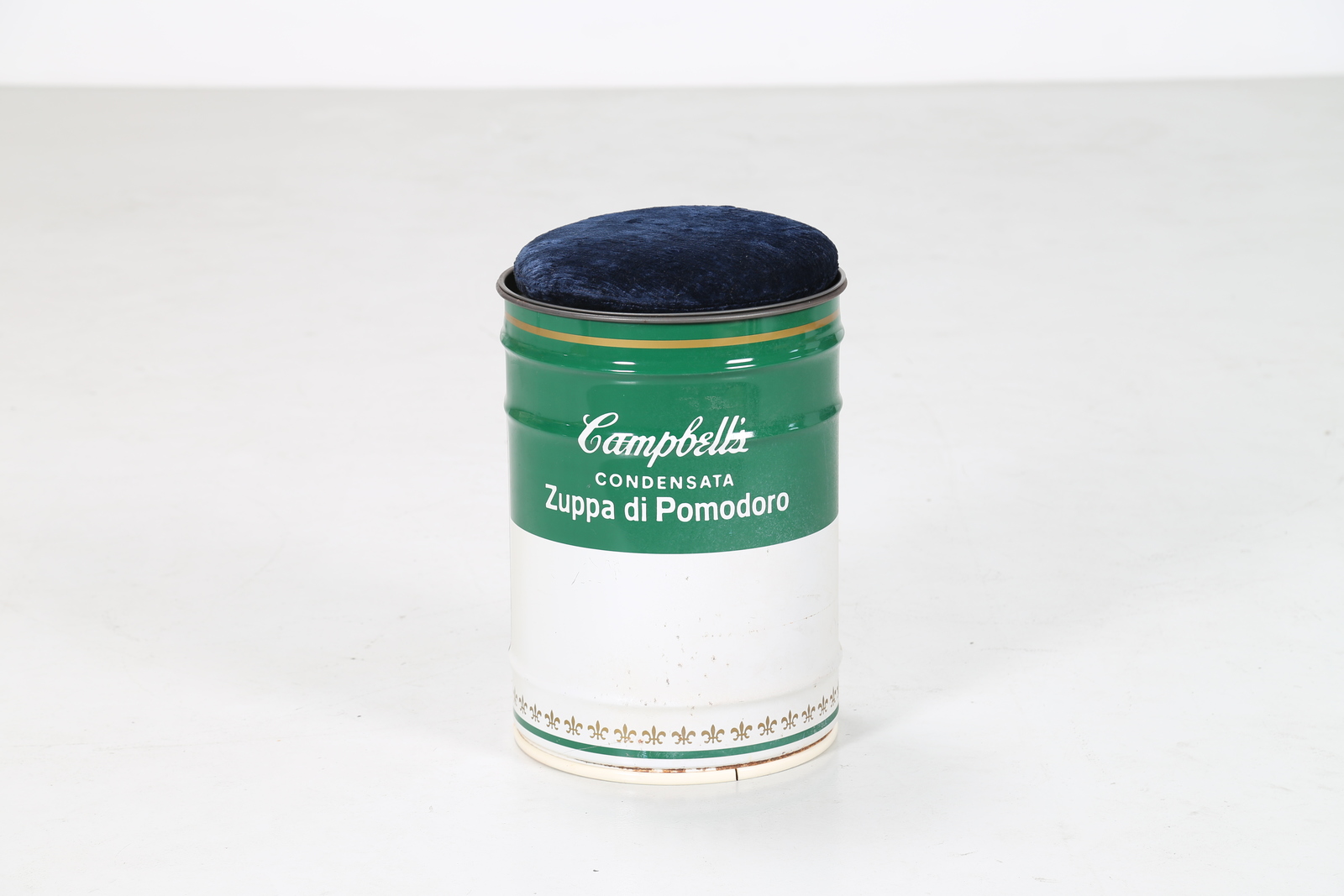 GAVINA SIMON Bidone sgabello in latta verniciata, omaggio a Andy Warhol,...