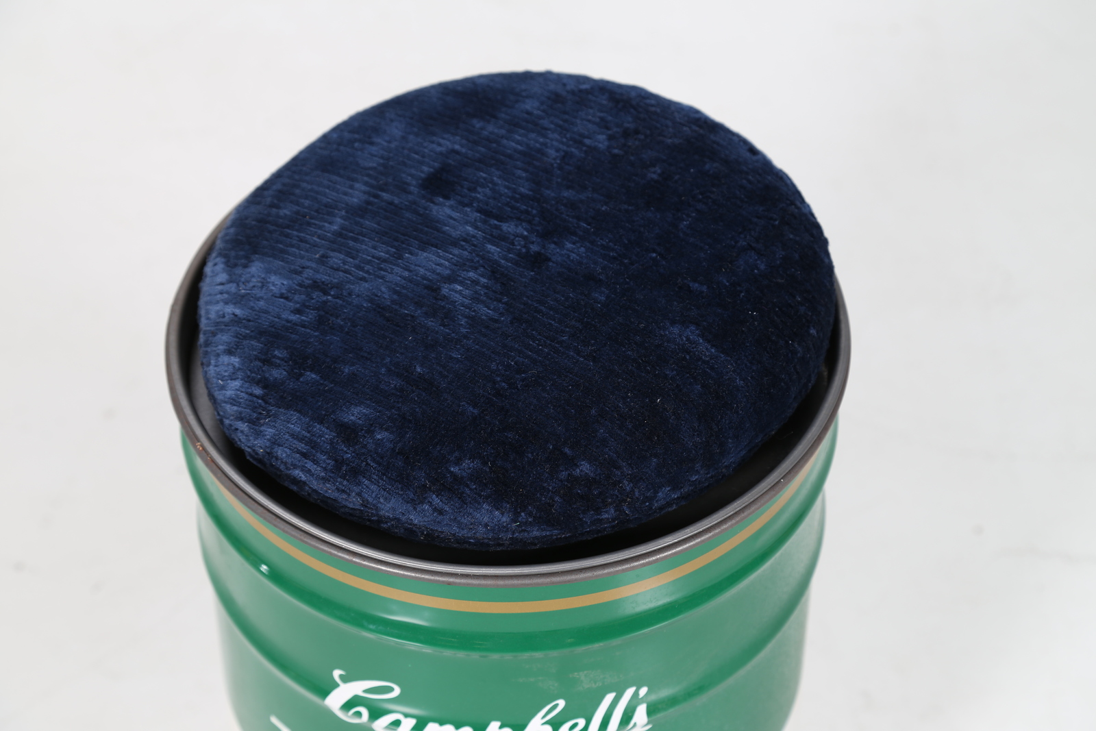 GAVINA SIMON Bidone sgabello in latta verniciata, omaggio a Andy Warhol, collezione Ultramobile, per Simon International, anni 70. -. Cm 30,50 x 42,00 x 30,50.