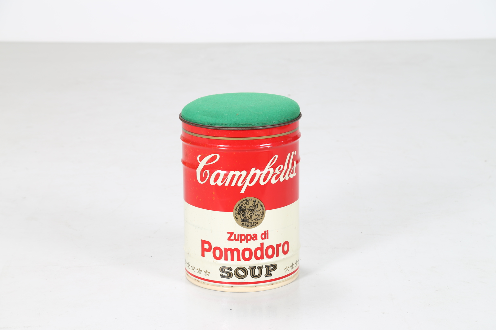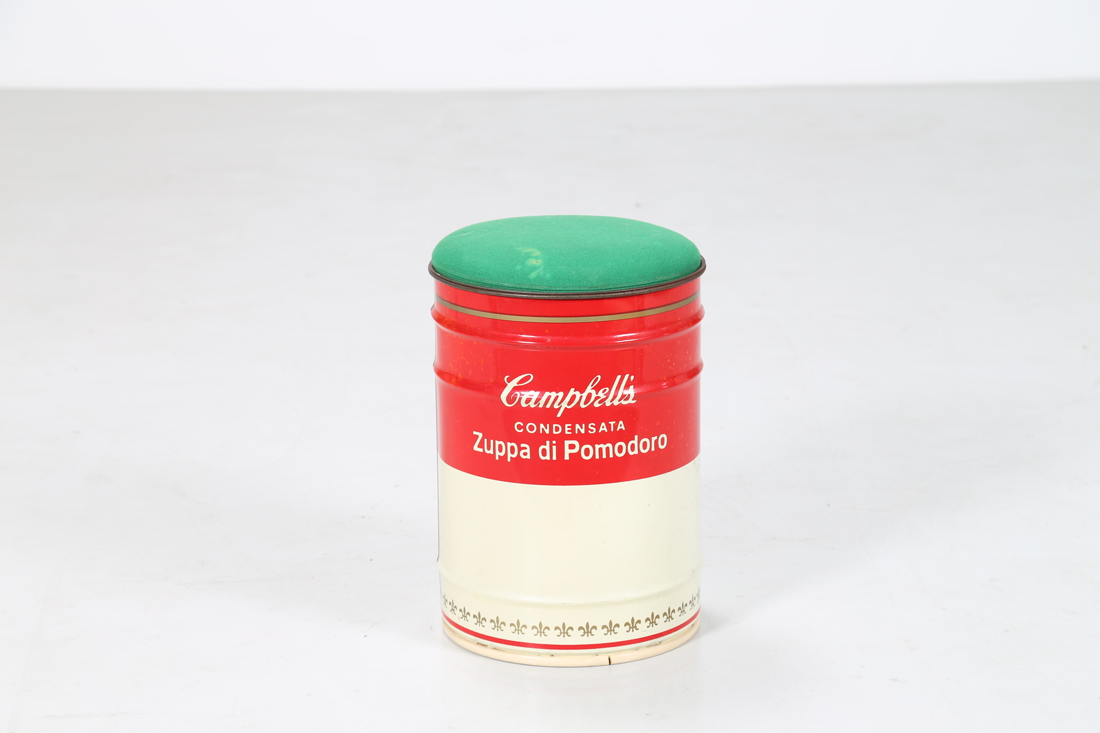 GAVINA SIMON Bidone sgabello in latta verniciata, omaggio a Andy Warhol, collezione Ultramobile, per Simon International, anni 70