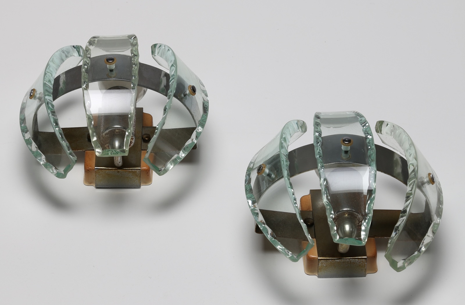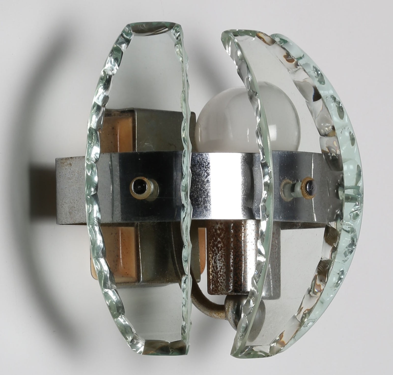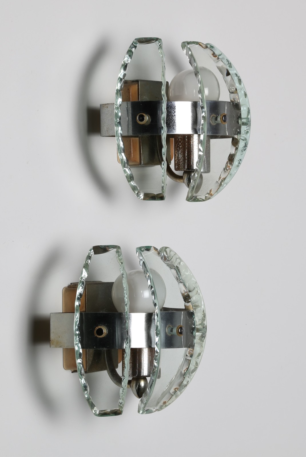 MANIFATTURA ITALIANA Pair of chromed metal and polished crystal appliques, 60’s.