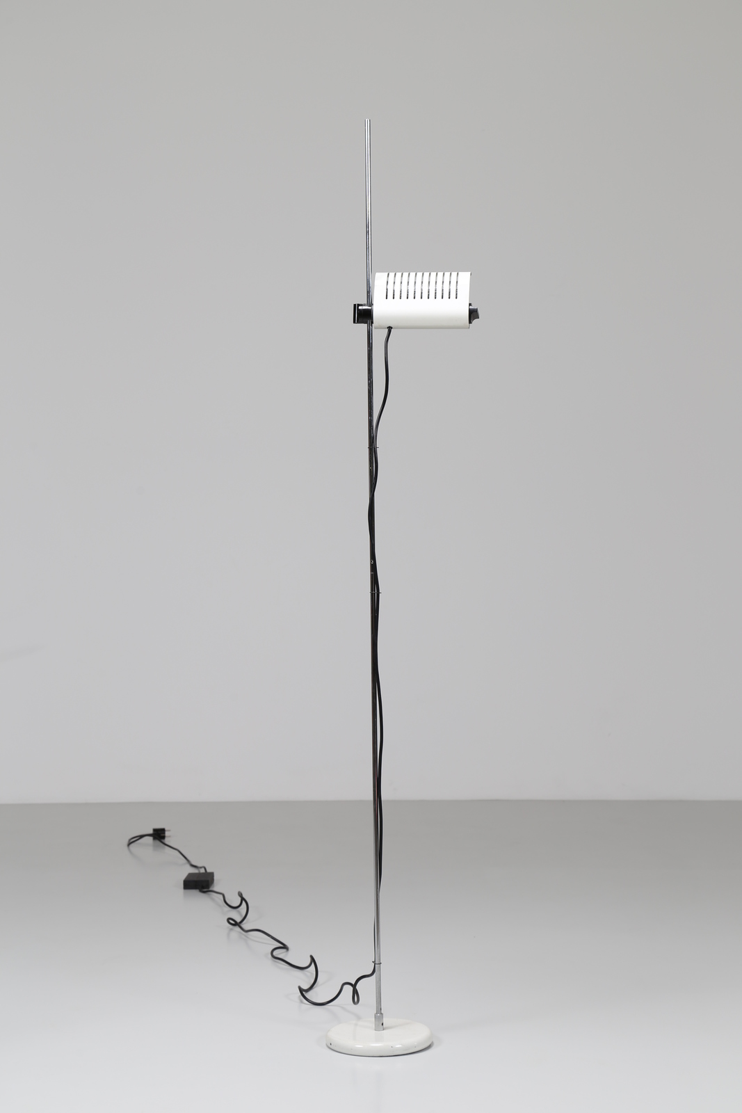 COLOMBO JOE (1930 - 1971) Chromed metal floor lamp with marble base, mod. 626 for Oluce, 70’s. There is the original label.