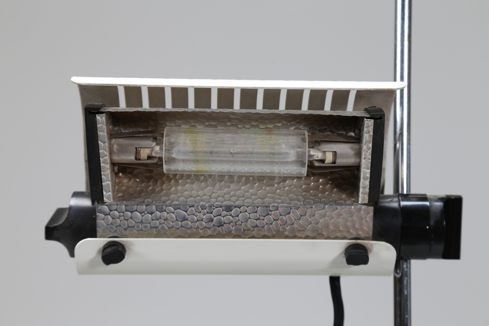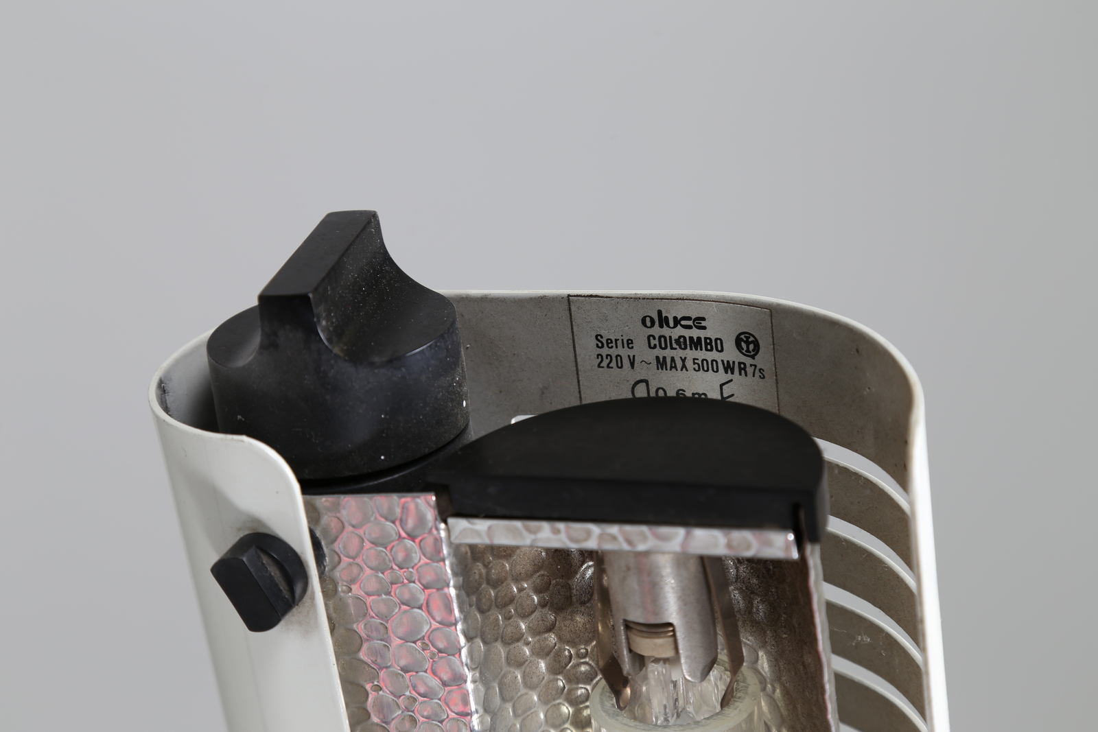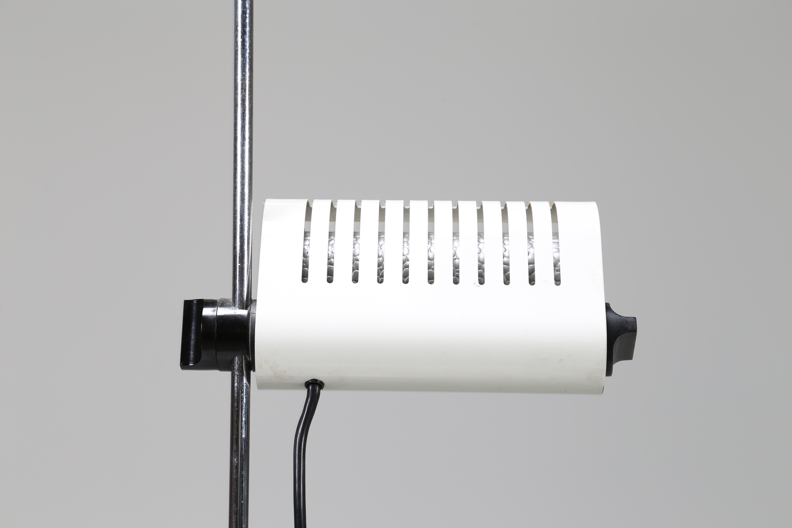 COLOMBO JOE (1930 - 1971) Lampada da terra in metallo cromato con base in marmo, mod. 626 per Oluce, anni 70. Etichetta originale presente.