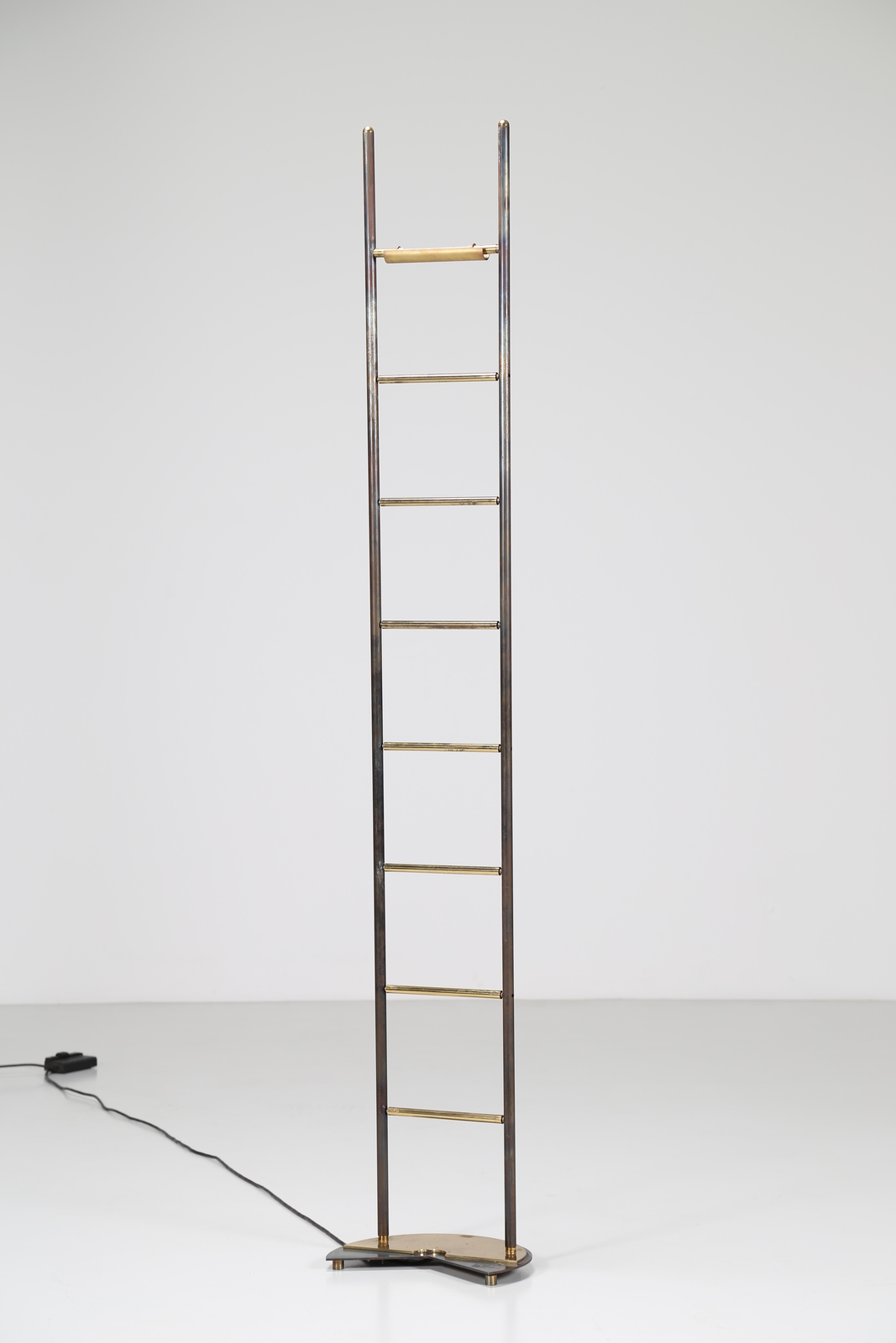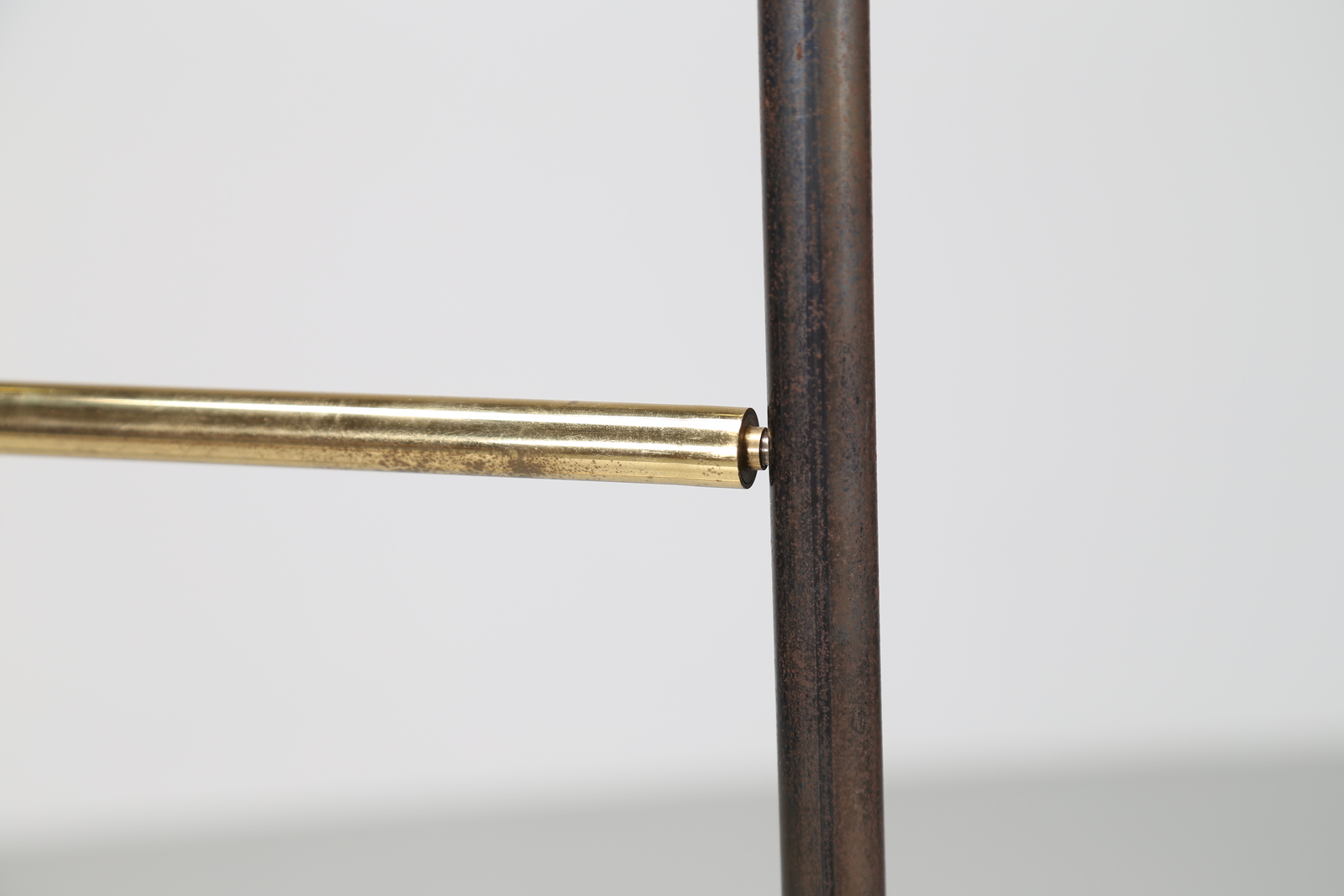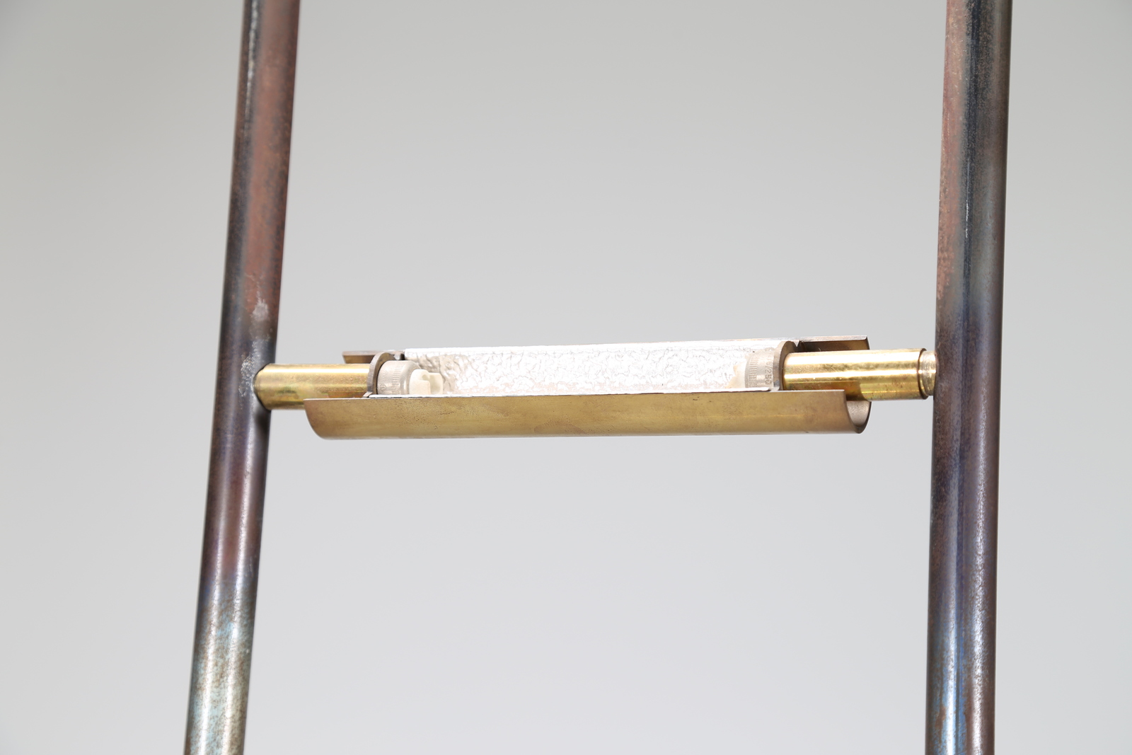 SALOCCHI CLAUDIO (1934 - 2009) Lampada in acciaio e ottone lucidato, mod. Scaligera, per Bottega Gadda. . 1. -. Cm 35,00 x 198,00 x 30,00.