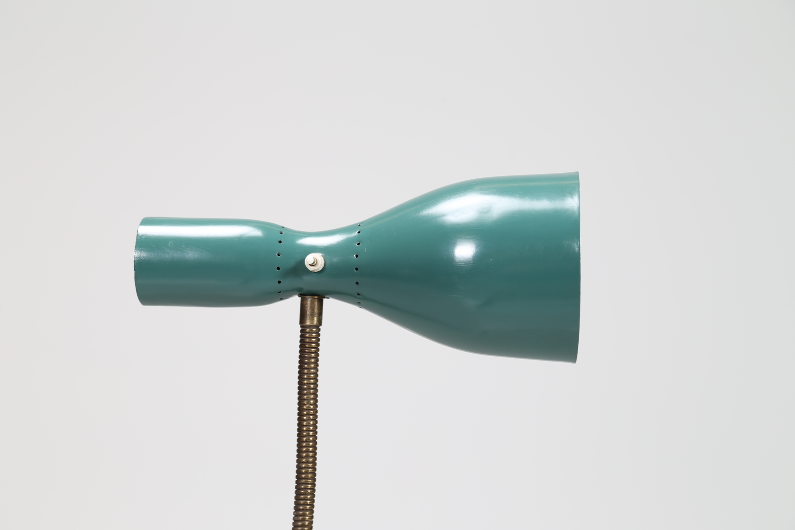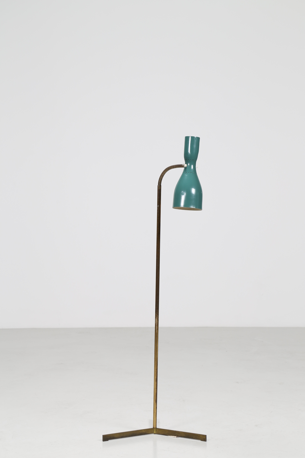 OSTUNI GIUSEPPE Attrib. Lampada da terra in ottone e metallo laccato, anni 50. -. Cm 60,00 x 167,00 x 45,00.