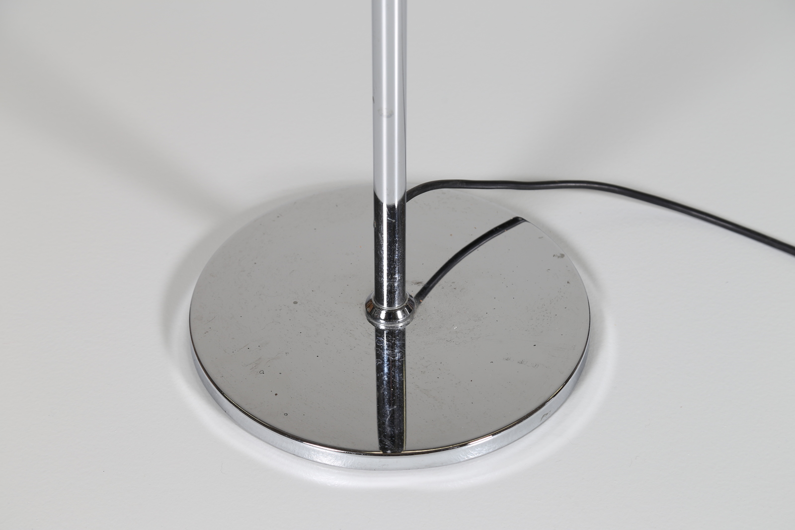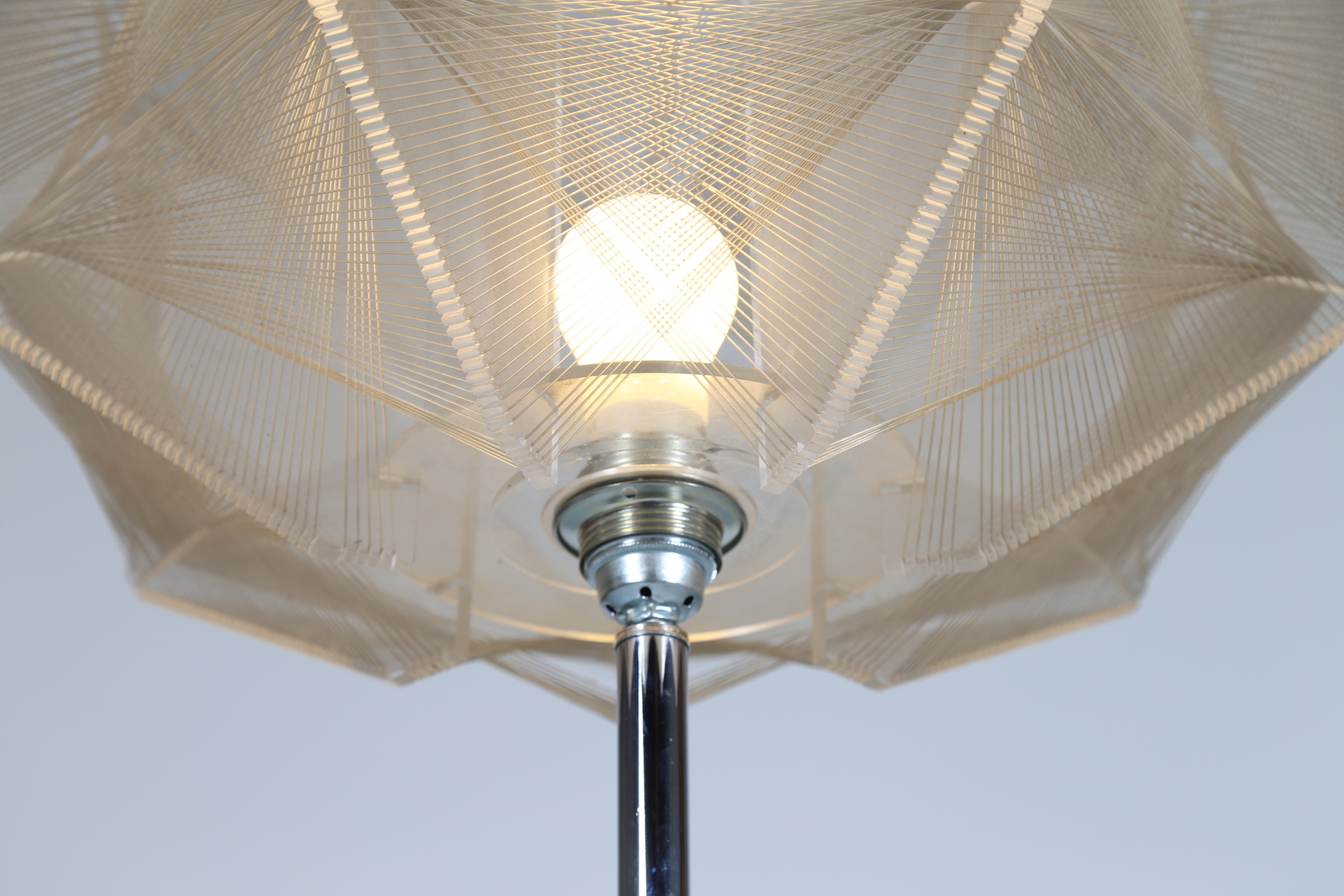 SECON PAUL (1916 - 2007) Floor lamp with chromed metal thin shaft, plexiglass diffusor and braided nylon strings, mod. Swag, for Sompex, 60’s, Germany.