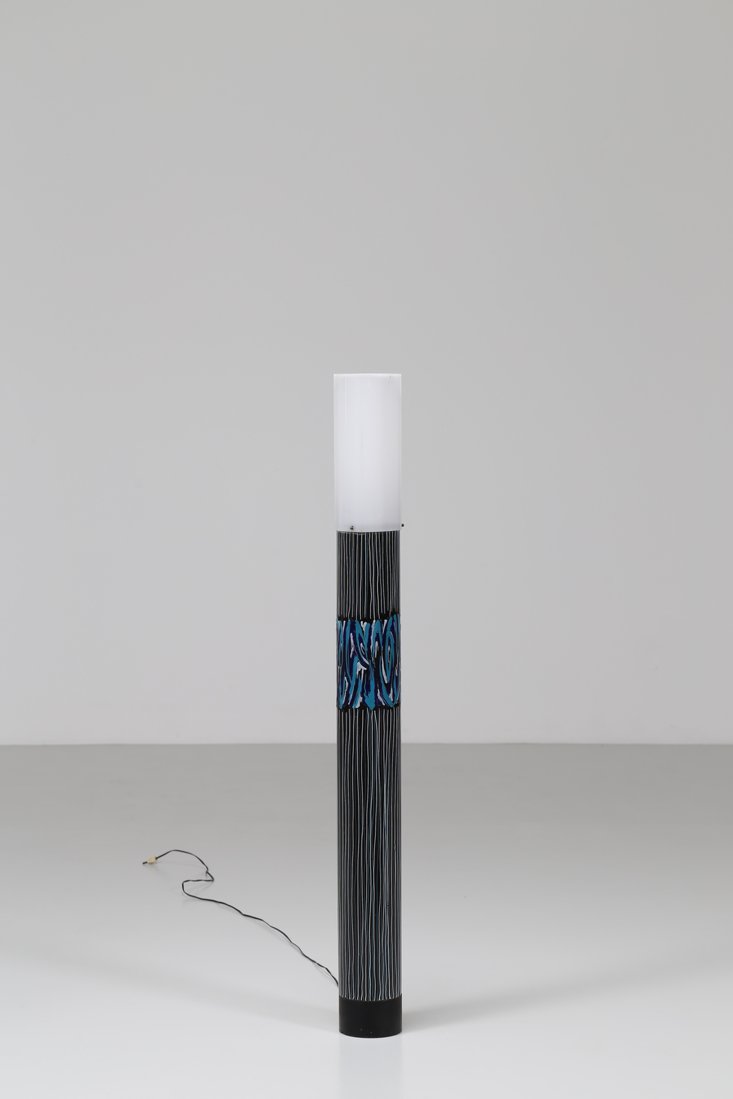 BROTTO ANGELO (1914 - 2002) Attrib. Lampada da terra in metallo smaltato e plexiglass, anni 60. -. Cm 13,00 x 125,00 x 13,00.