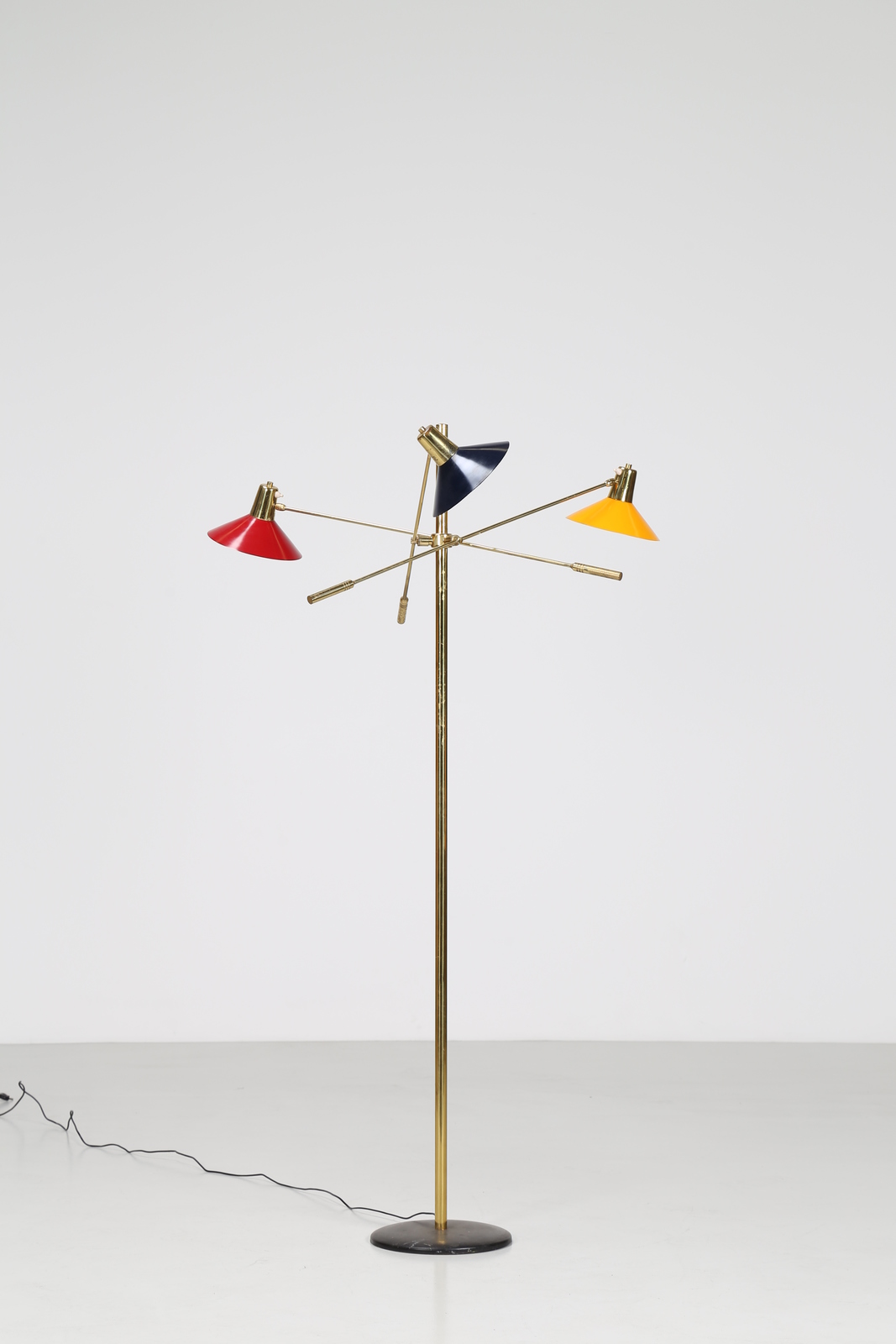 STILNOVO Attrib. Lampada da terra in ottone e metallo laccato, anni 50. -. Cm 86,00 x 185,00 x 86,00.