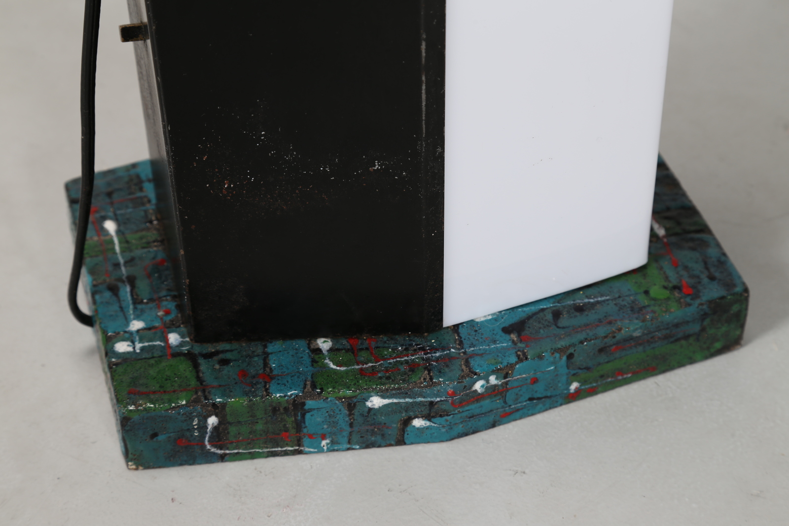 BROTTO ANGELO (1914 - 2002) Attrib. Piantana in metallo laccato nero, ottone e perspex, base in marmo, anni 60. . Cm 24,50 x 183,50 x 17,00.