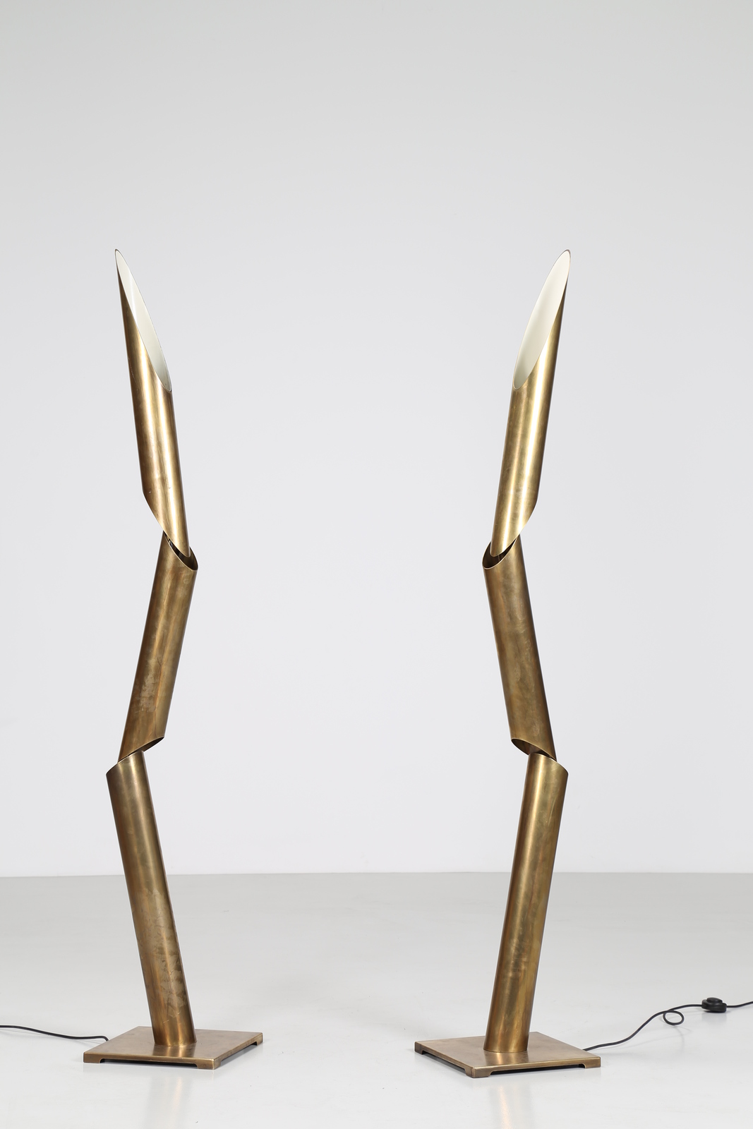 MANIFATTURA ITALIANA Coppia di lampade da terra in ottone, anni 70. -. Cm 34,00 x 196,00 x 34,00.
