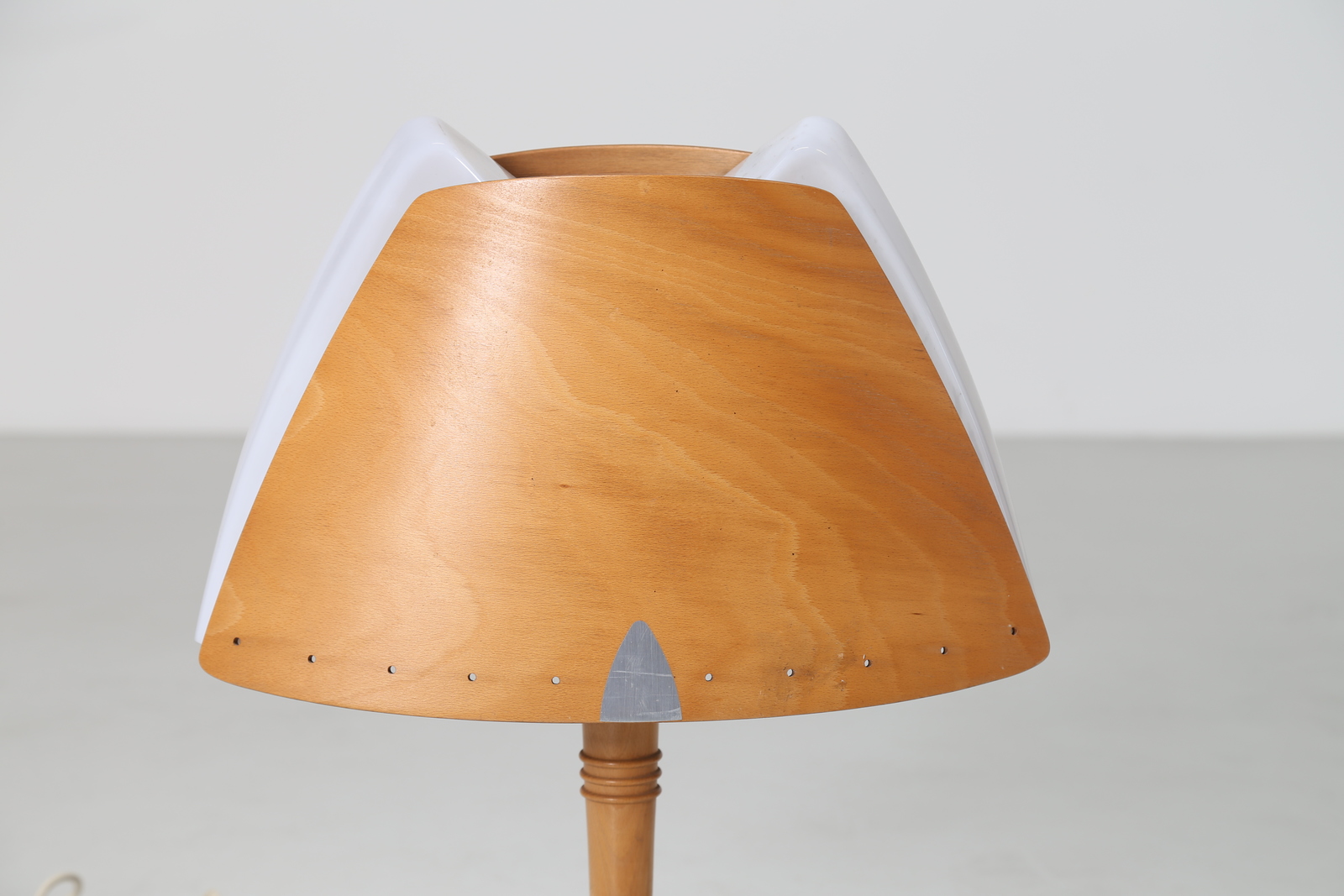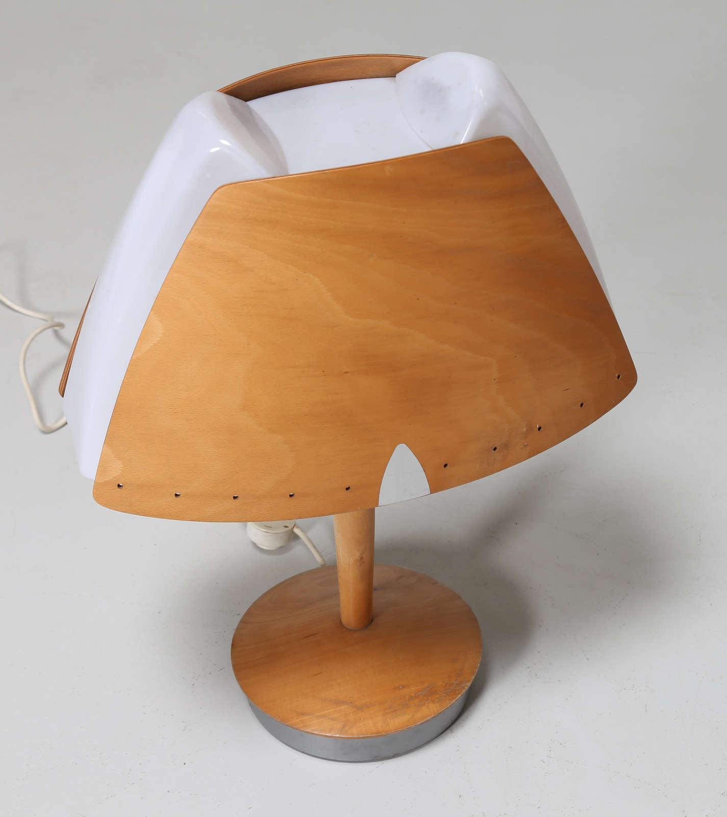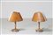 Lot 100 | - Coppia di lampade da tavolo in legno curvo metallo e plexiglass, disegnata...