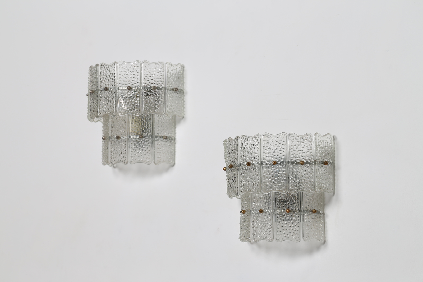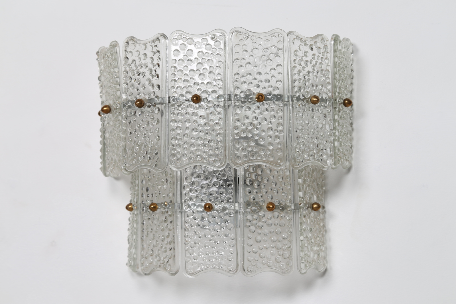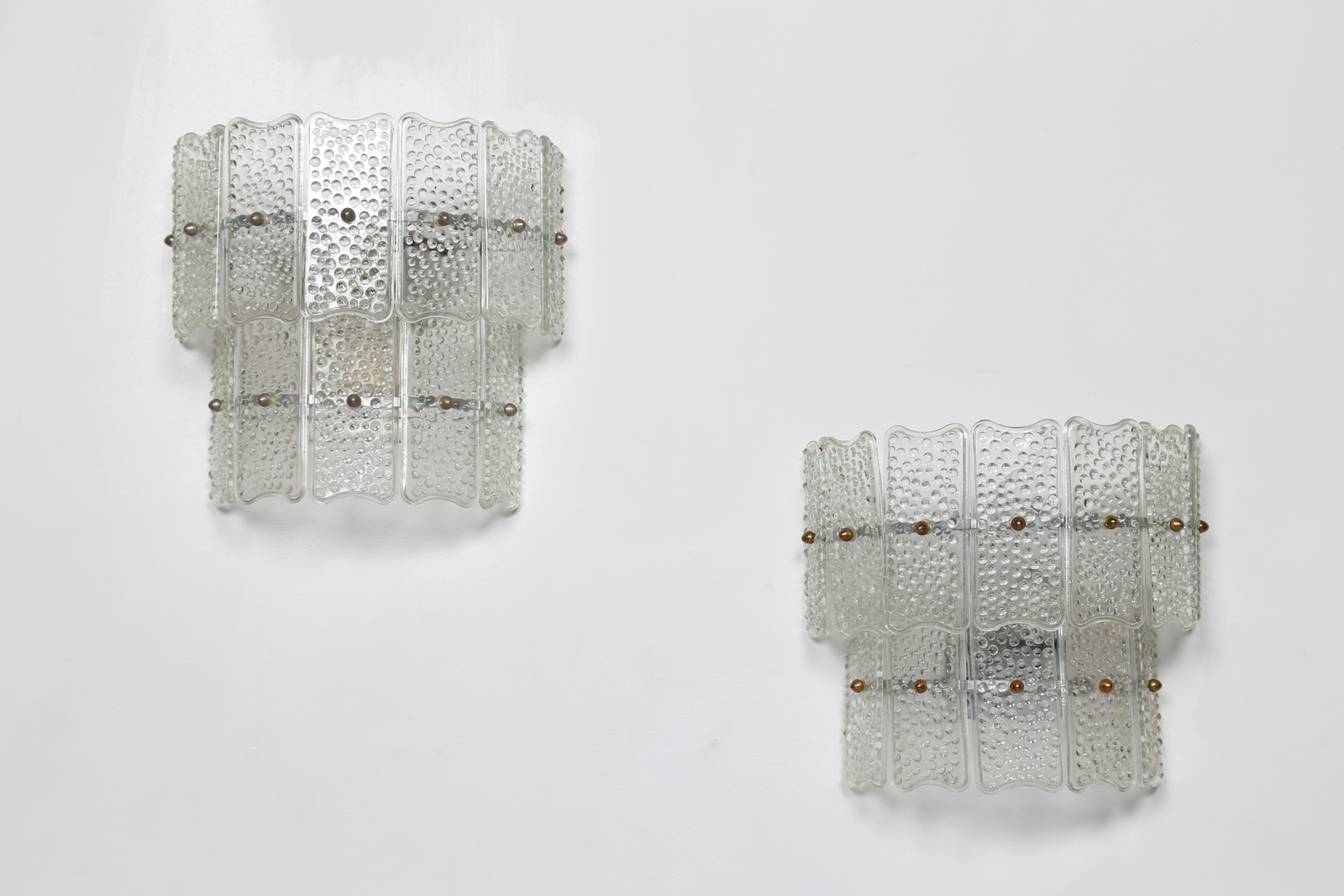 MANIFATTURA ITALIANA Pair of metal and glass appliques, Murano, 60’s.