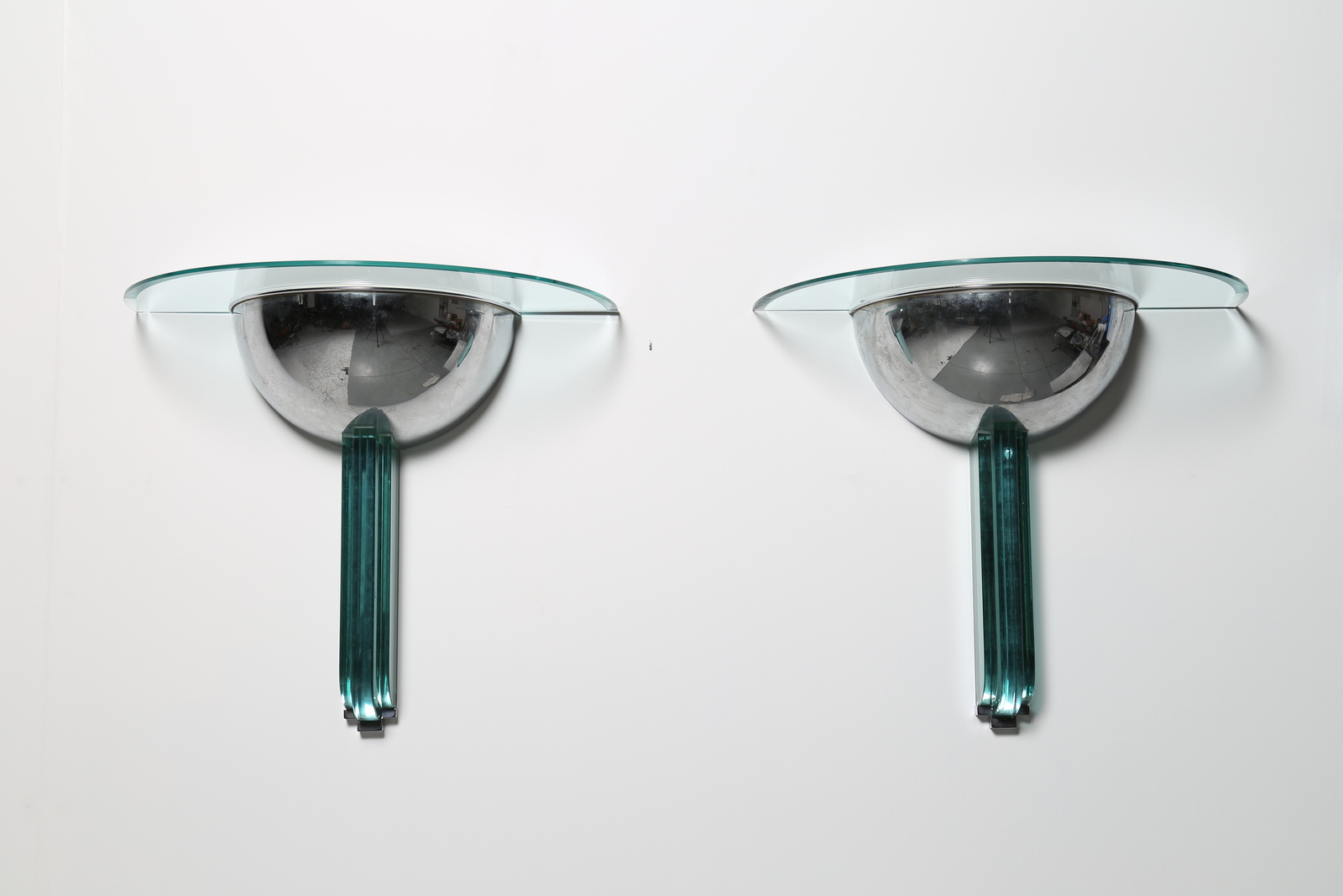 FONTANA ARTE Pair of chromed metal and polished crystal wall lamps, 50’s. . . Cm 70,00 x 65,00 x 39,00.