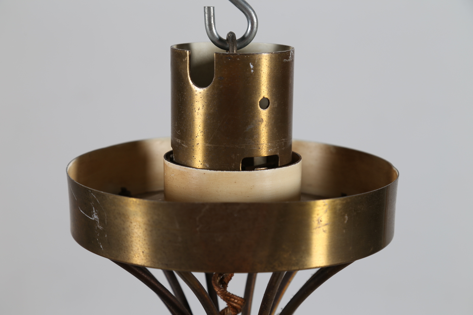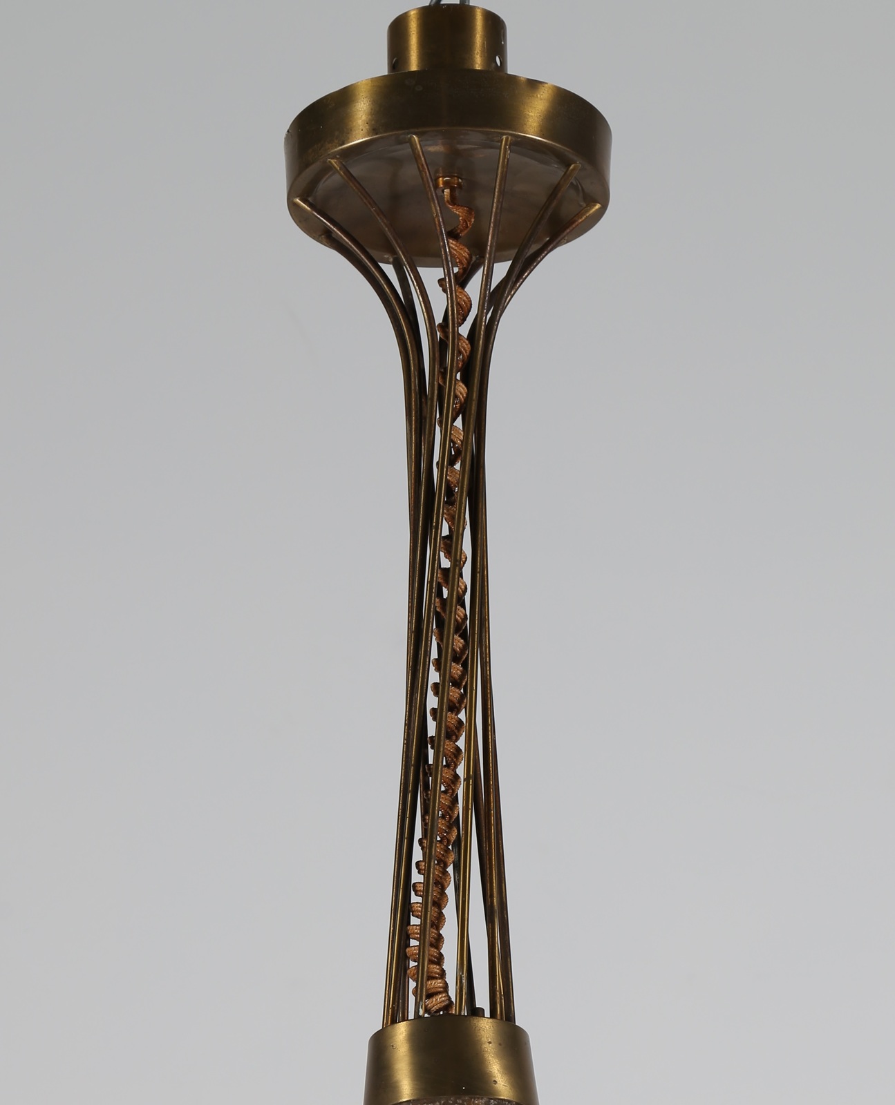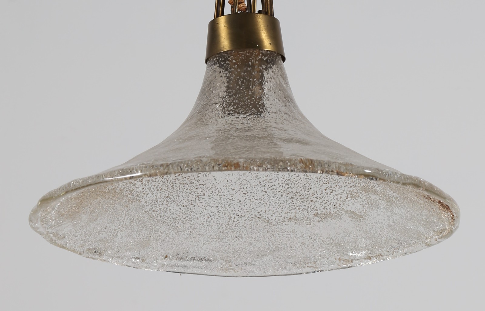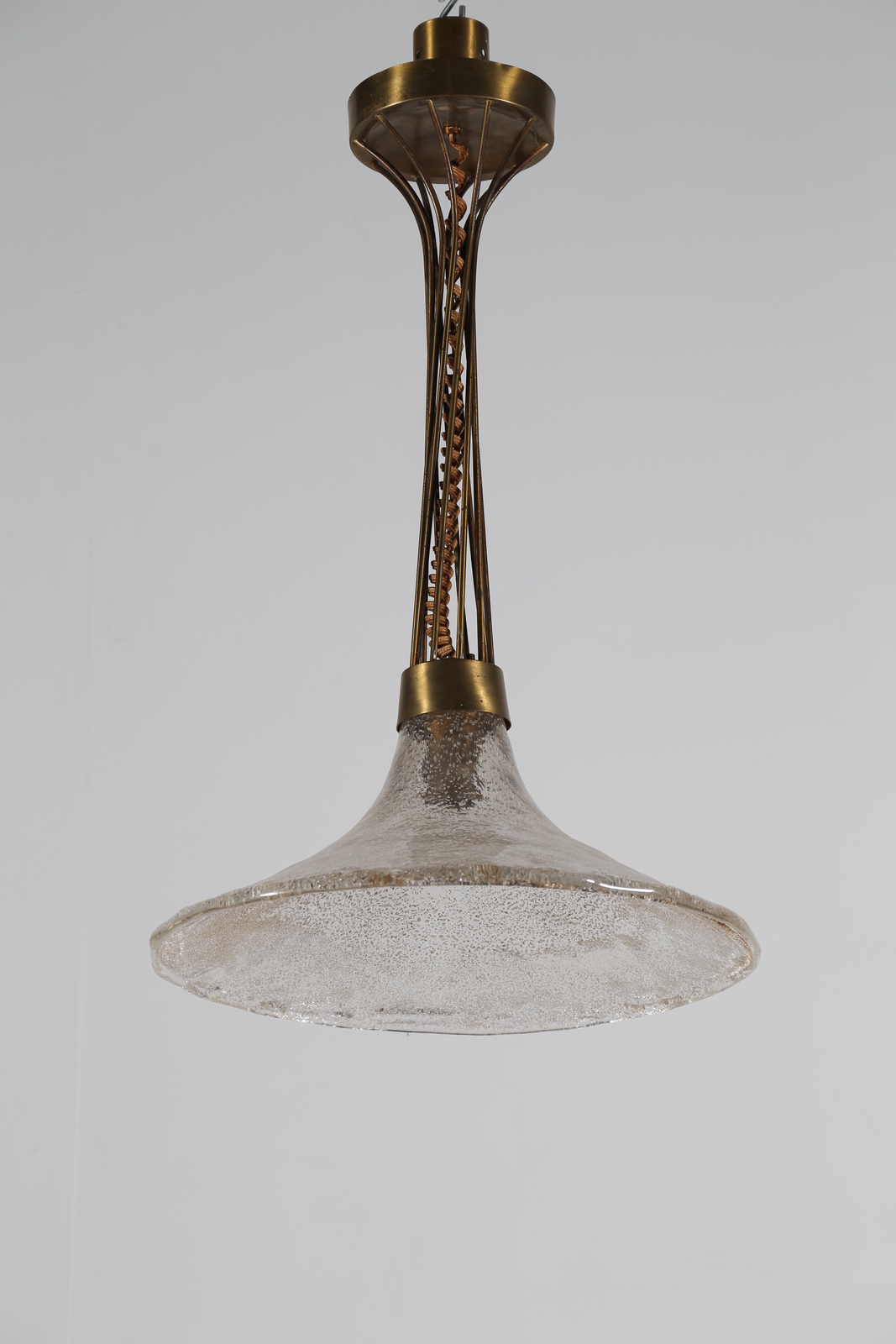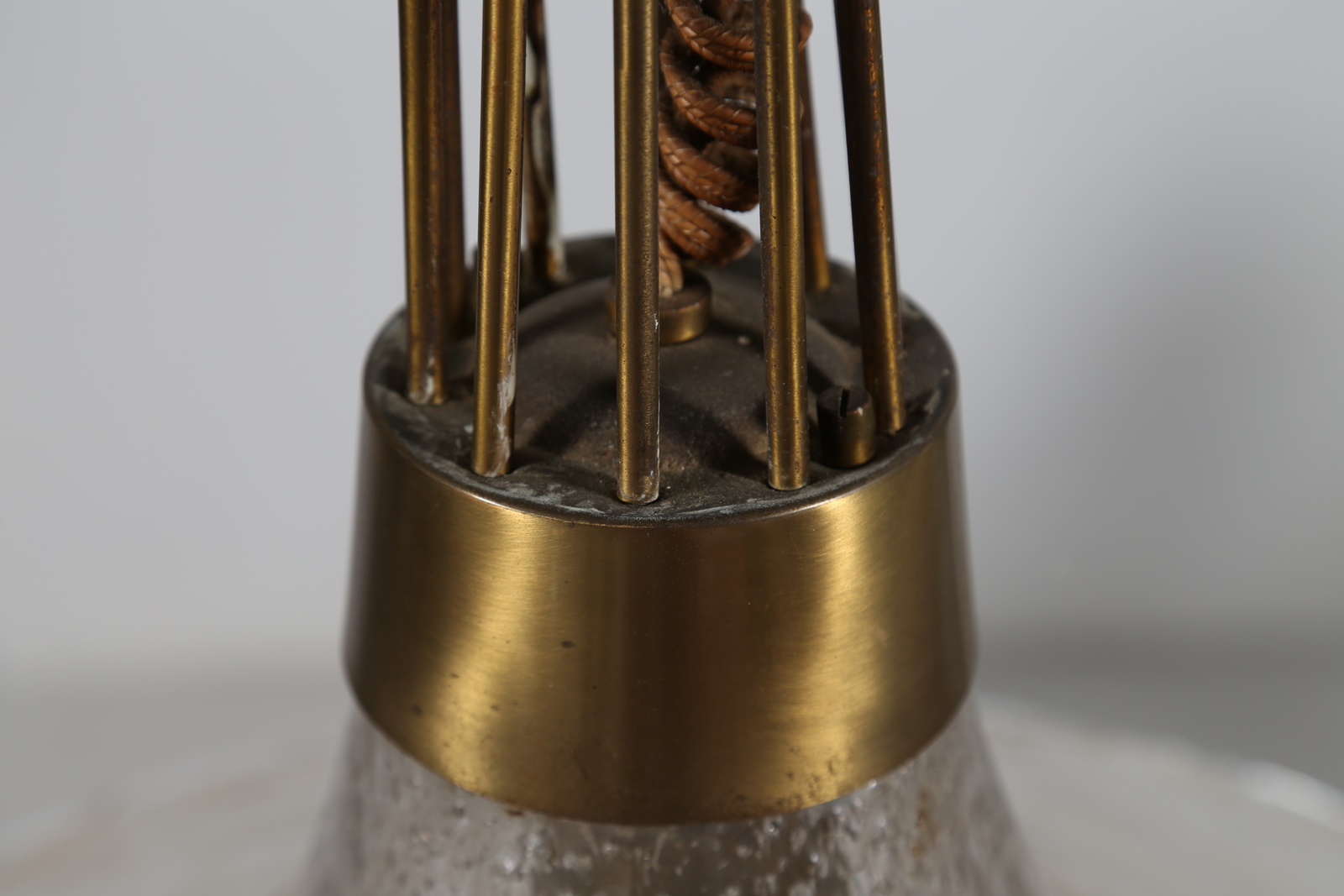 MANIFATTURA ITALIANA Lampadario in ottone e vetro pulegoso, anni 60. -. Cm...