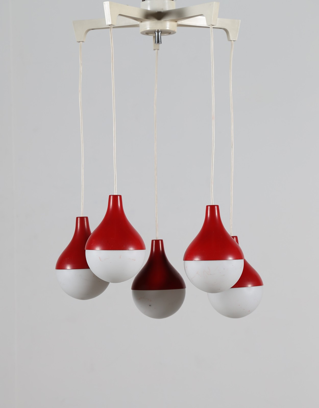 STILNOVO Lacquered aluminum chandelier, glass and plastic, 60’s.