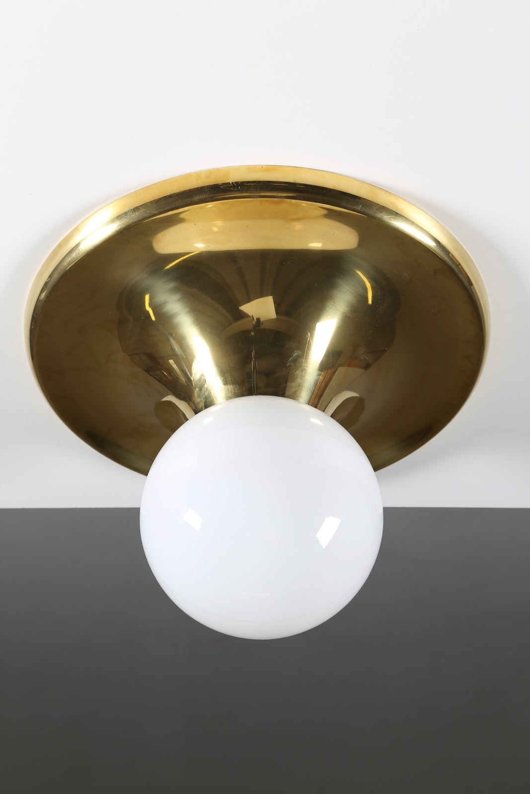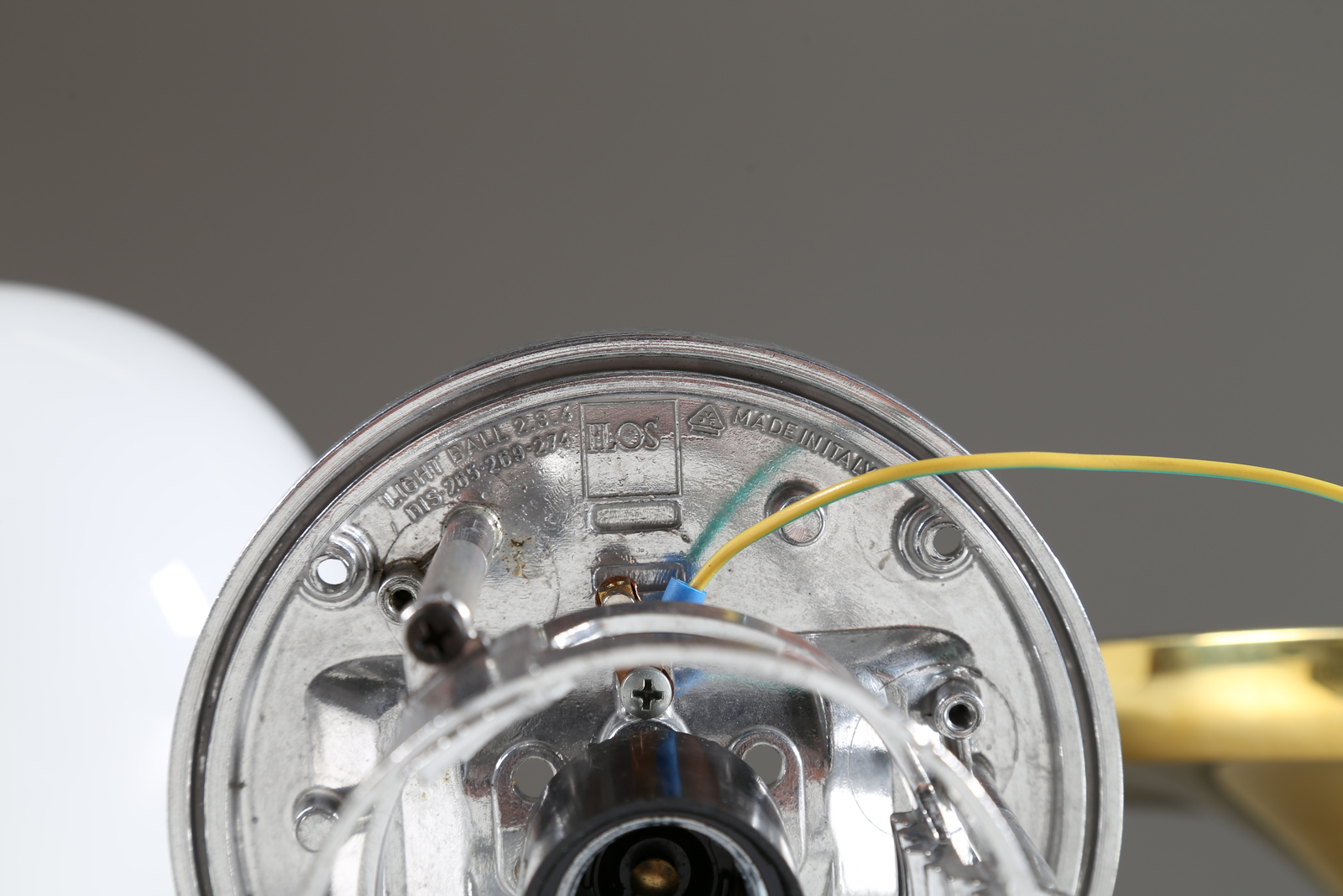 ACHILLE & PIERGIACOMO CASTIGLIONI (1918 - 2002) Lampada in ottone e vetro opalino mod. Light Ball, per Flos anni 60. -. Cm 42,00 x 31,00 x 42,00.