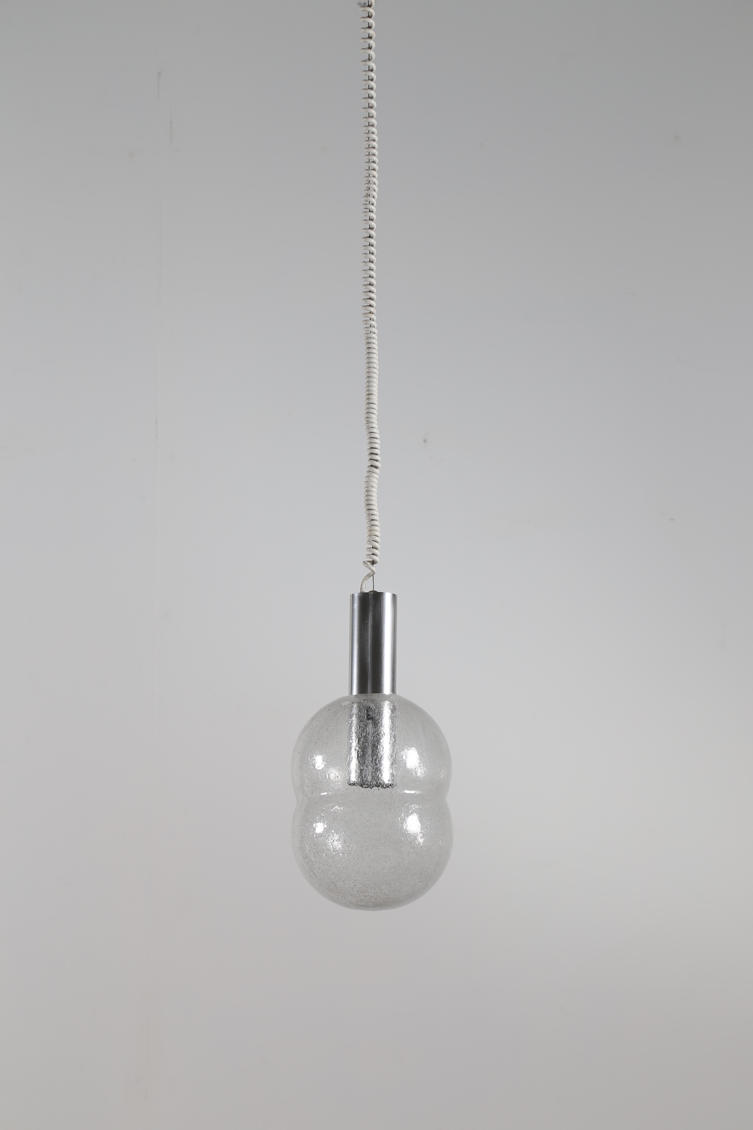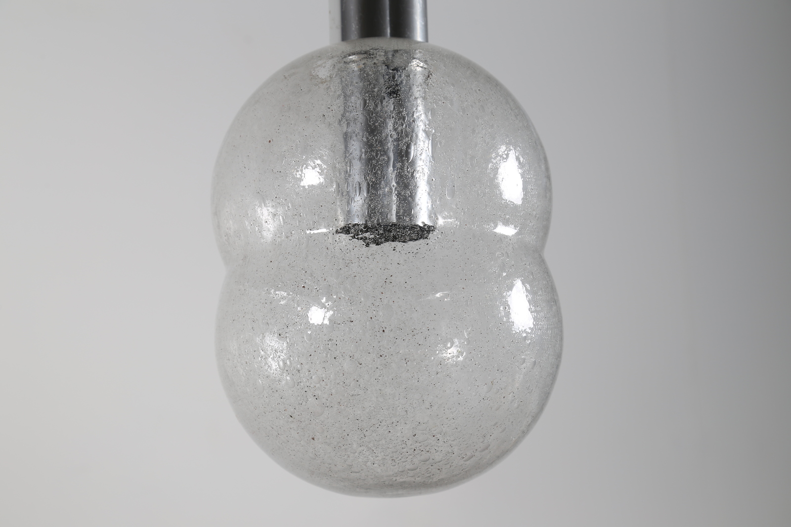 SCARPA TOBIA (n. 1935) Lampada a sospensione in alluminio anodizzato e vetro ghiacciato, mod. Bilobo per Floss, 1965. . Cm 22,00 x 130,00 x 22,00.