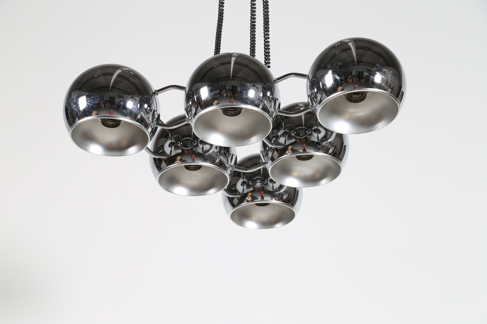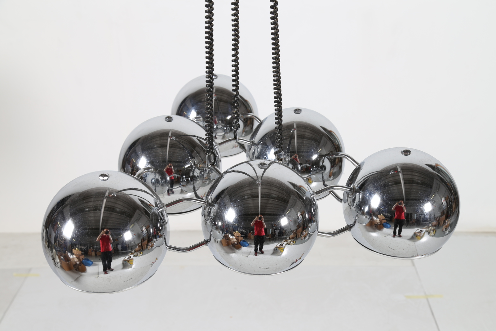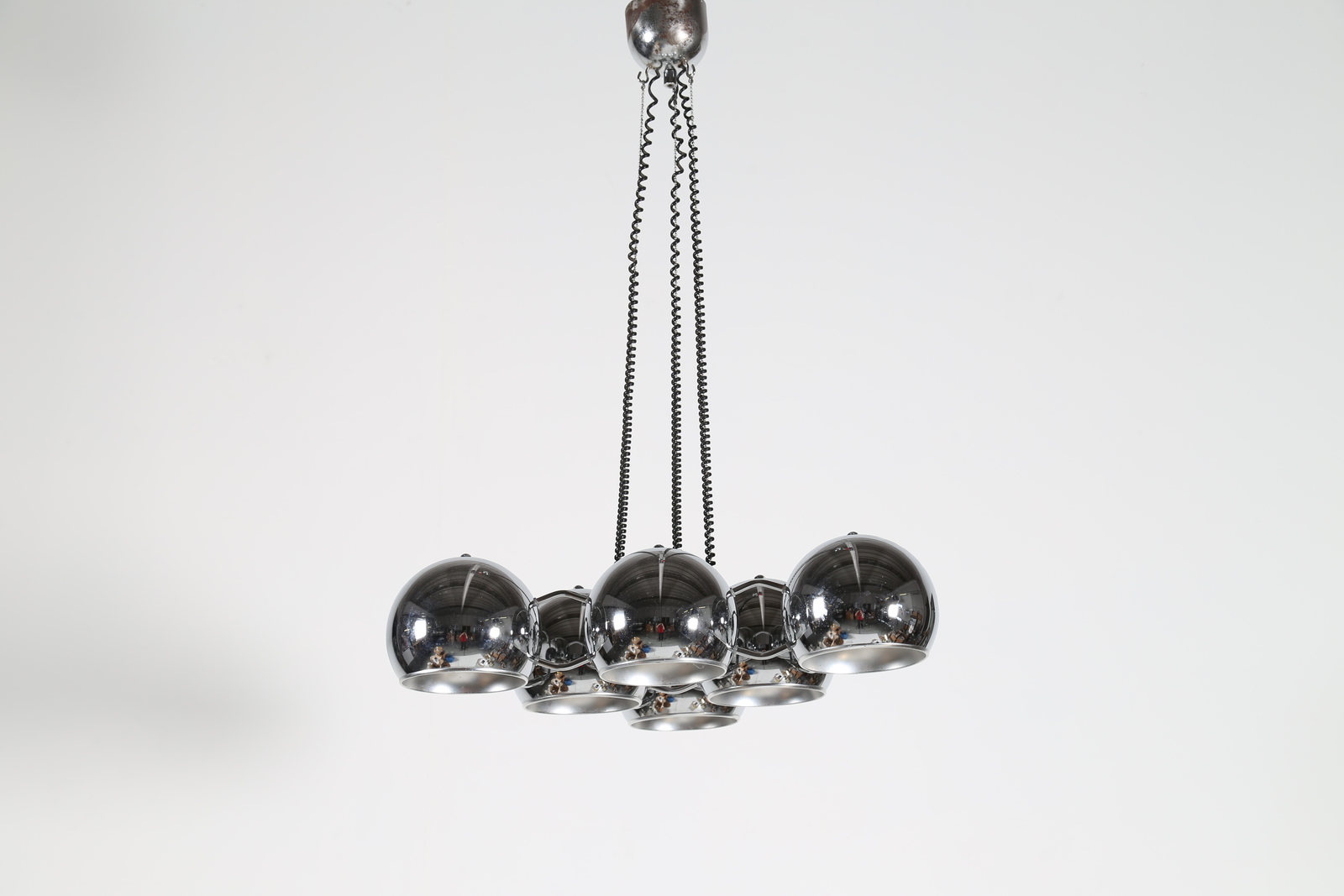 REGGIANI GOFFREDO Lampadario in metallo cromato, anni 70. -. Cm 65,00 x 90,00 x 65,00.