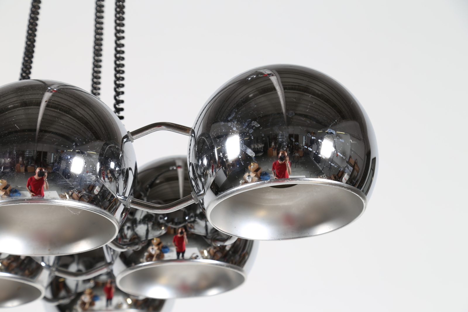 REGGIANI GOFFREDO Lampadario in metallo cromato, anni 70. -. Cm 65,00 x 90,00...