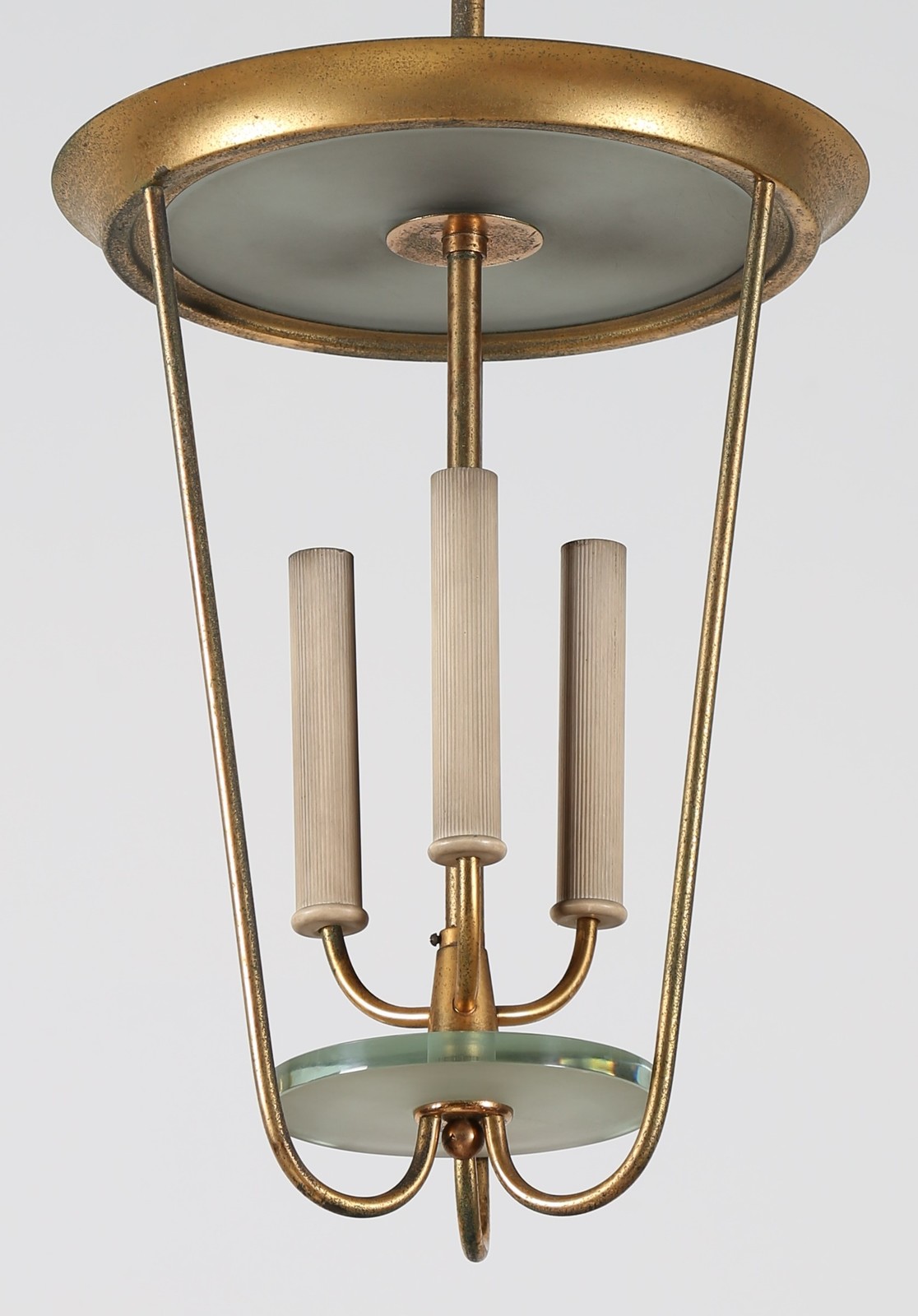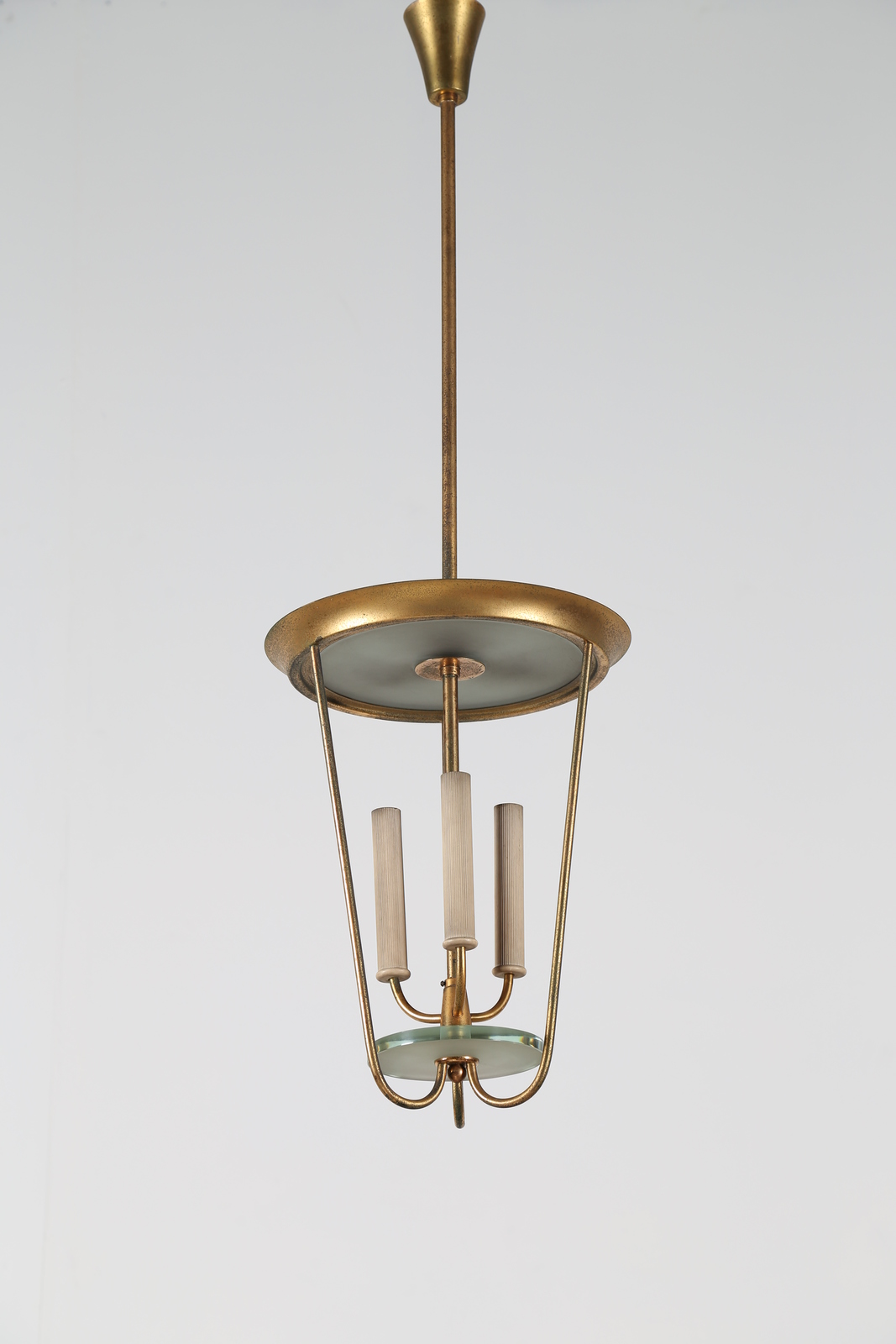 TORLASCO OSCAR Lampadario in metallo laccato ottone e vetro, per Lumi anni 50. -. Cm 30,00 x 100,00 x 30,00.