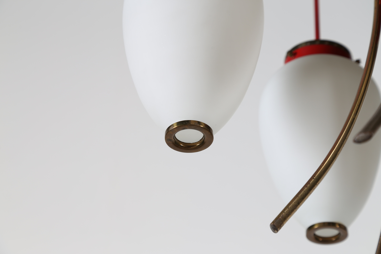 STILNOVO Lampadario in metallo laccato ottone e vetro opalino, anni 50. -. Cm...