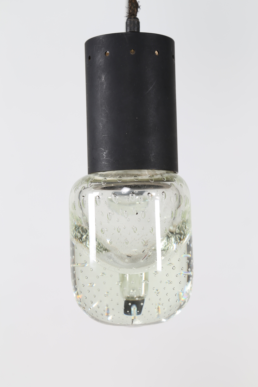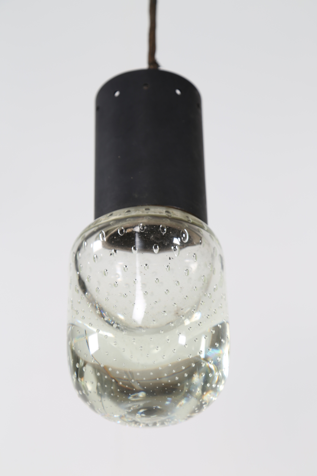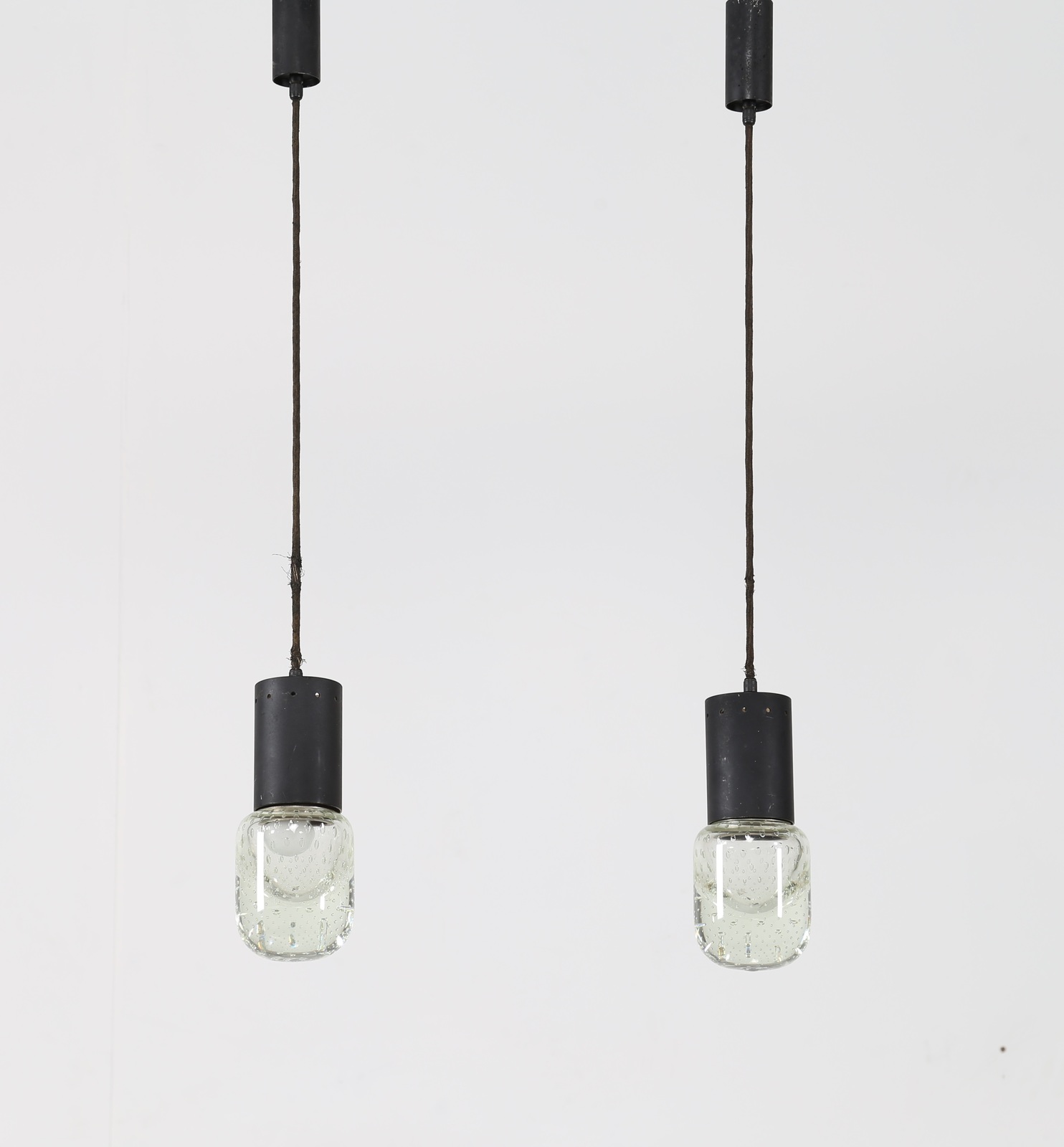 SARFATTI GINO (1912 - 1985) Coppia di lampade a sospensione in metallo laccato e vetro bulicante, per Arrteluce, anni 60. -. Cm 10,00 x 90,00 x 10,00.