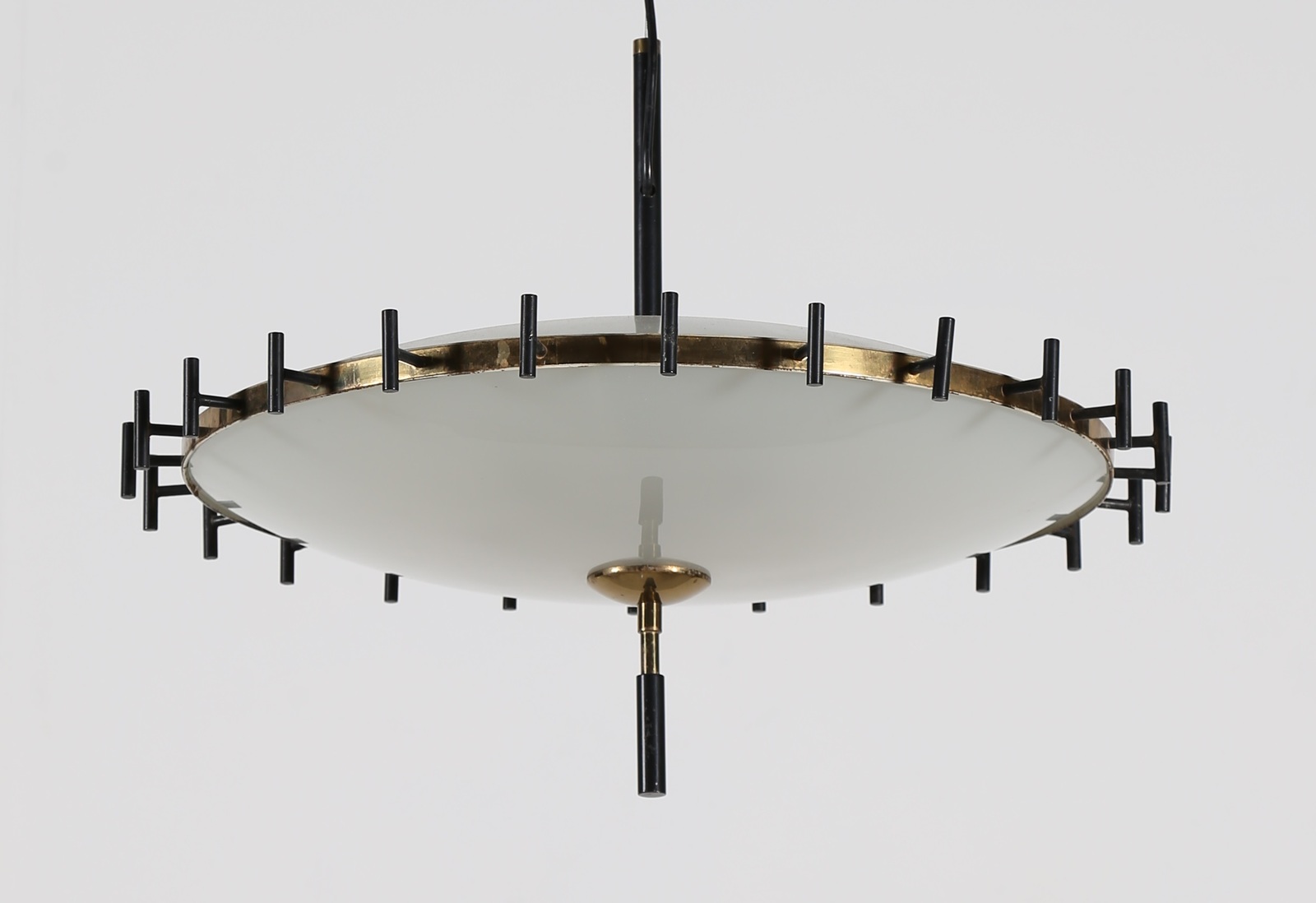 ARREDOLUCE Attrib. Lampada a sospensione in ottone metallo laccato e vetro...