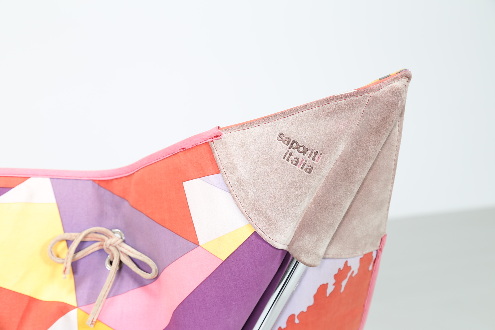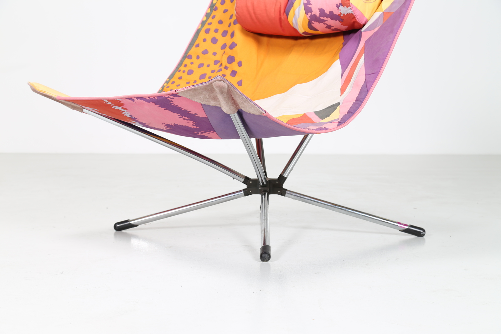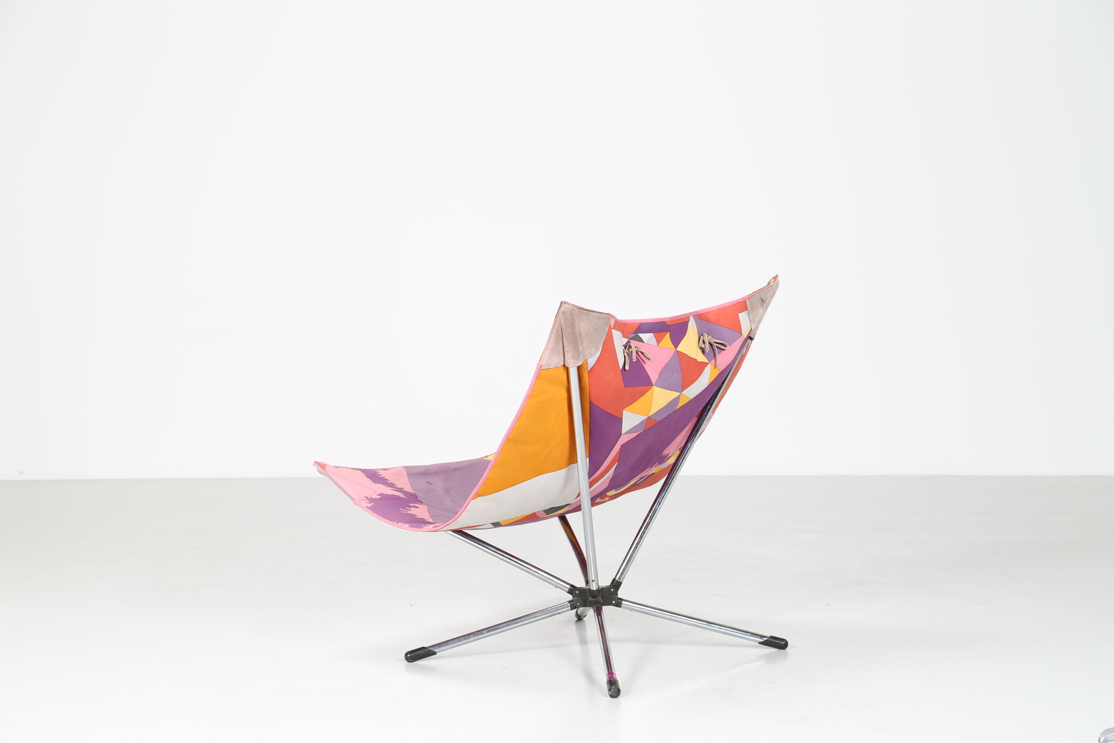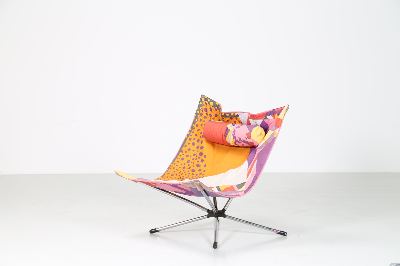 SALVATI ALBERTO e TRESOLDI AMBROGIO Sedia pieghevole in metallo cromato e tessuto Missoni, mod. Miamina, per Saporiti anni 80. -. Cm 90,00 x 97,50 x 90,00.