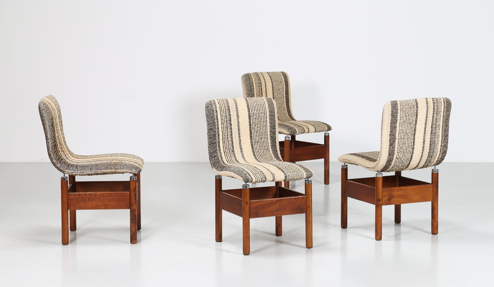 INTROINI VITTORIO Quattro sedie in legno tinto all'anilina acciaio cromato e imbottitura rivestita in tessuto, mod. Chelsea, per Saporiti, anni 60.
